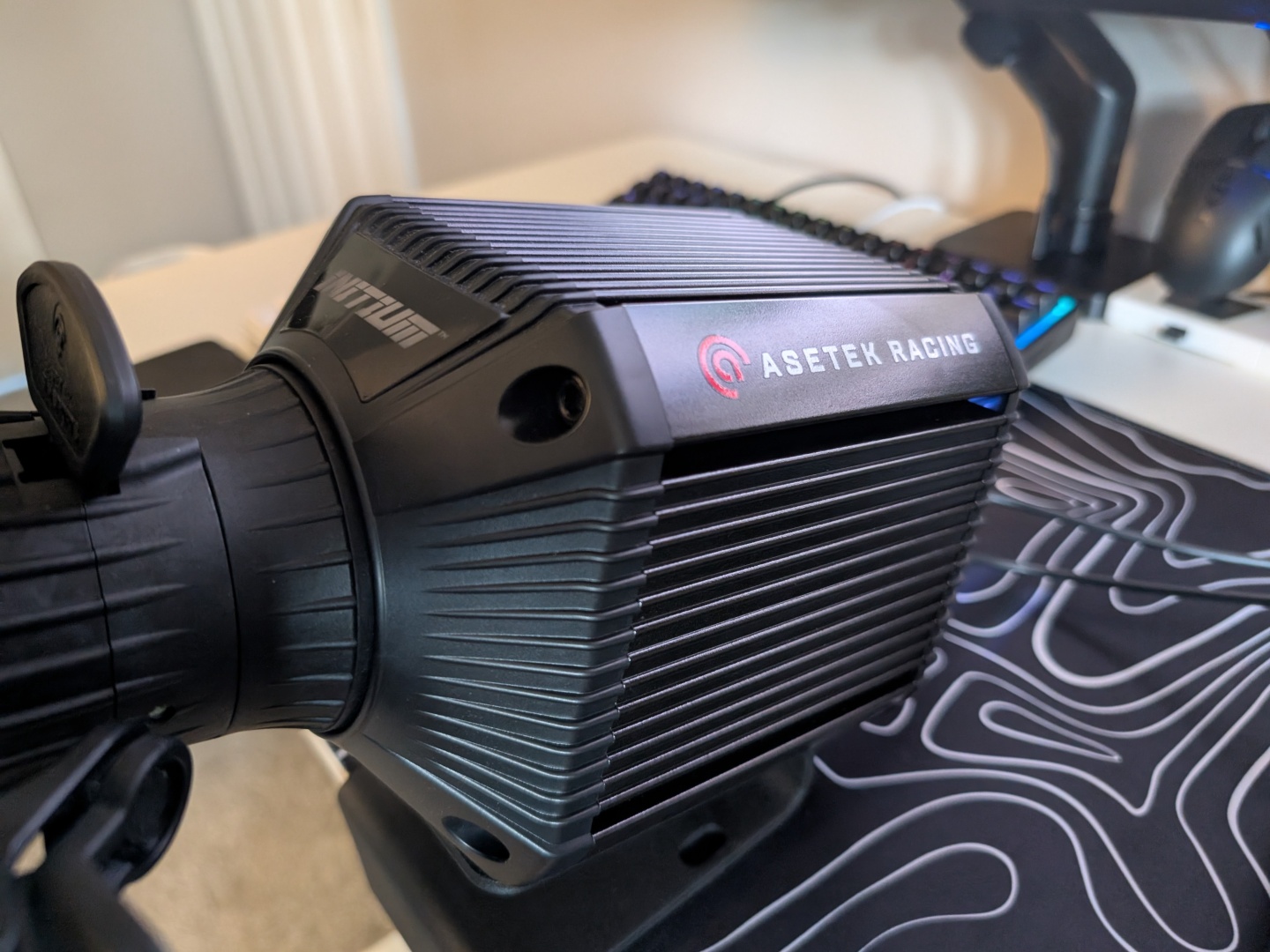 A kormánykerék autóipari minőségű fröccsöntött műanyagból készült, és gumírozott markolattal rendelkezik. Az Asetek úgy döntött, hogy itt nem használ bőrt, ami őszintén szólva semmit sem vesz el a vezetési élményből. A gombok jól elrendezettek és viszonylag könnyen elérhetőek. A fordulatszámmérő LED-jei szép kiegészítői ennek a kedvező árú versenykészletnek. Hátul két mágneses lapát található, amelyek puhák, csendesek, de nem a legkönnyebben elérhetőek, ha a kezek nem az ideális helyzetben vannak a kormánykeréken.