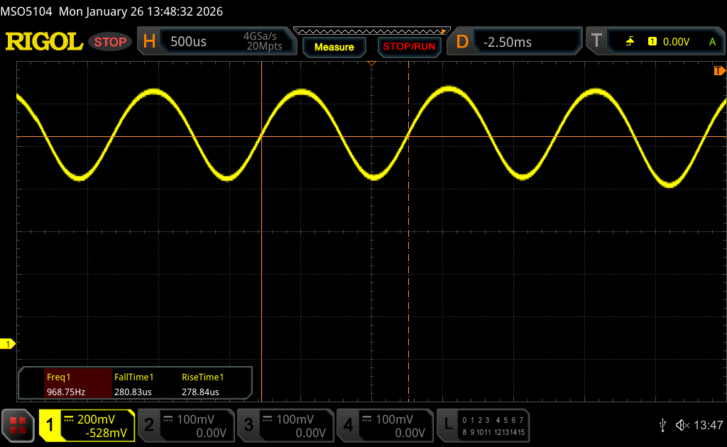 (+) | a csúcsok lineárisak (2.7% delta az előző frekvenciához képest)