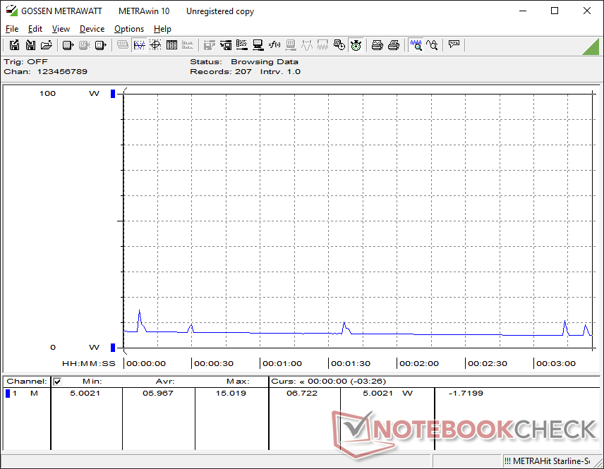 A teljes fogyasztás a CPU teljes kihasználtsága esetén a mellékelt 90 W-os USB-C hálózati adapterrel a csúcsot alig 65 W alatt éri el.