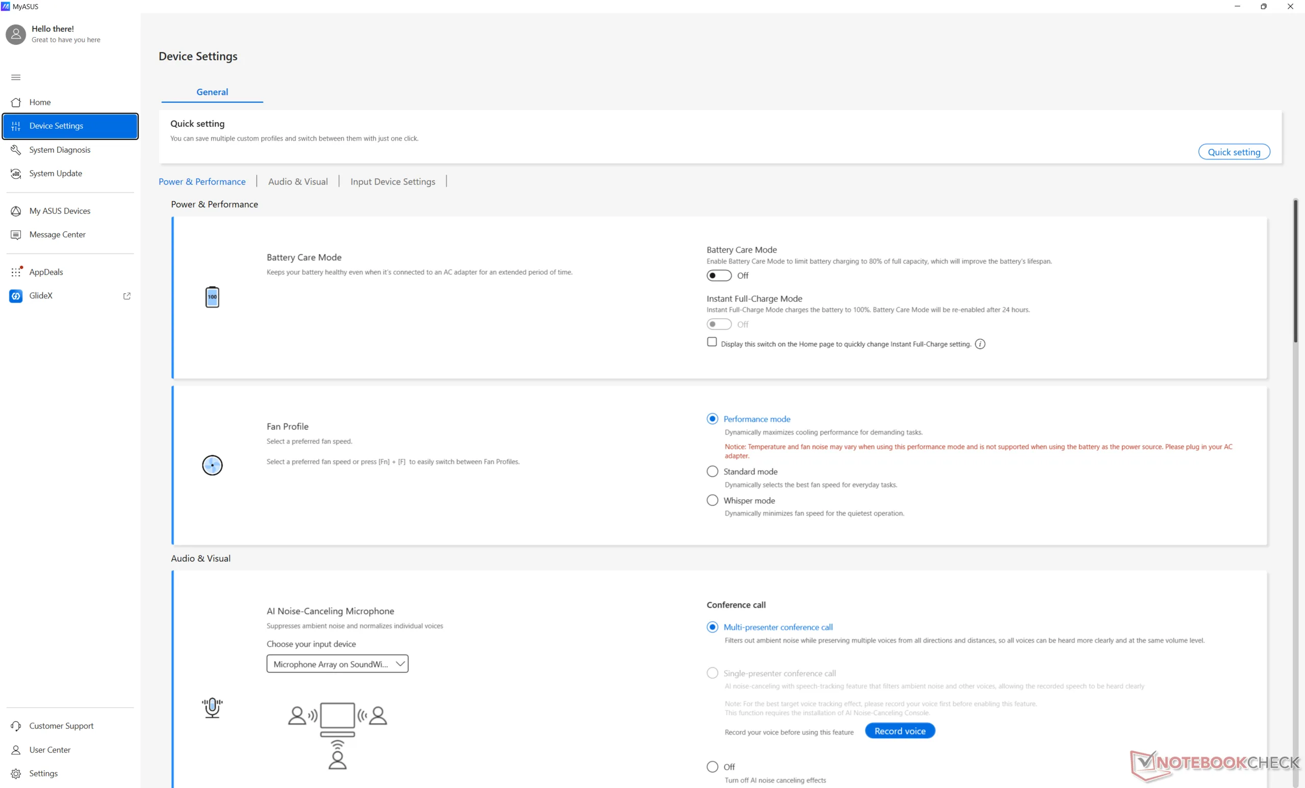 Az Asus említésre méltó hátránya, hogy a maximális processzorteljesítményhez hálózatra kell csatlakoztatni. Ellenkező esetben a rendszer egy alacsonyabb TDP-határértéknél korlátozódik, ami teljesítménybeli lemaradással jár. A legtöbb régebbi, integrált grafikával rendelkező laptop nem mutatja ezt a viselkedést, ha akkumulátorról működik.