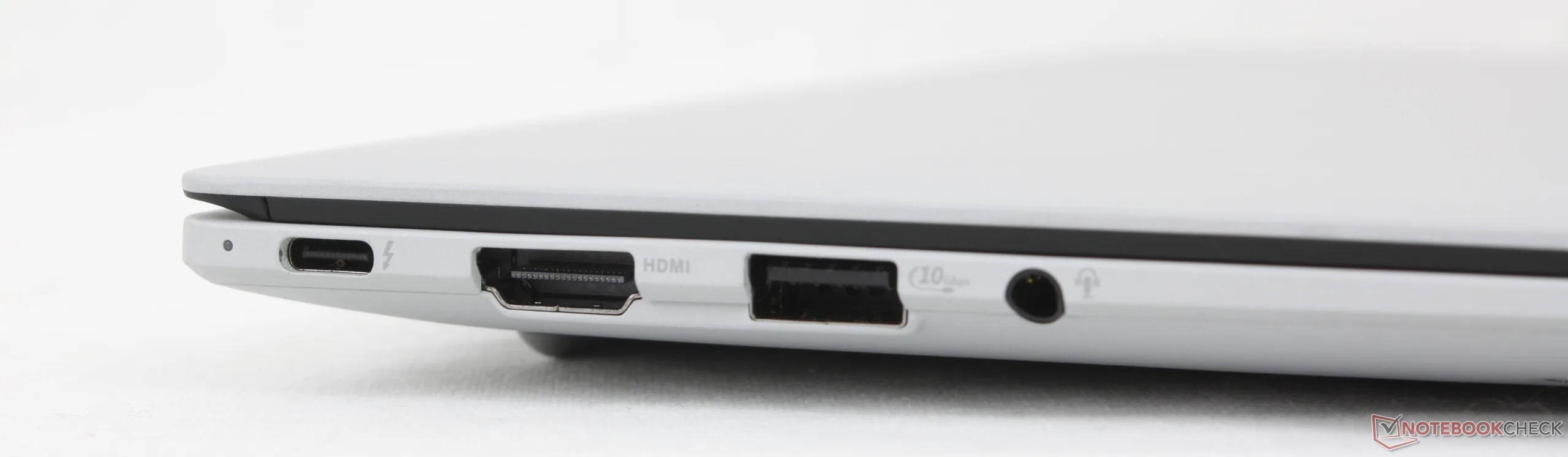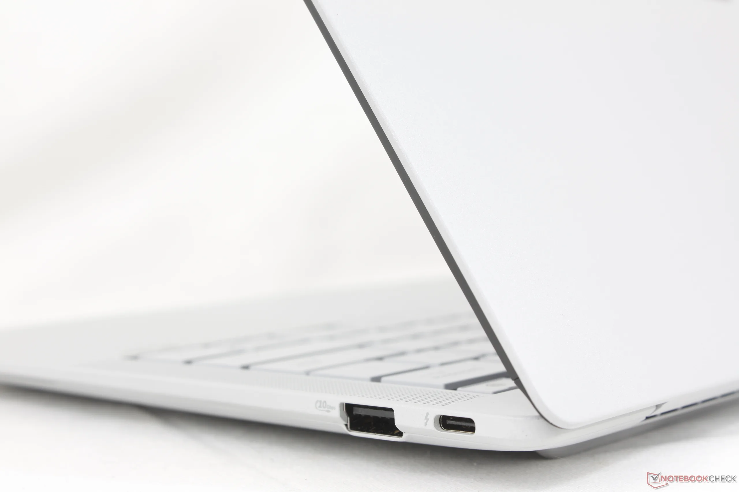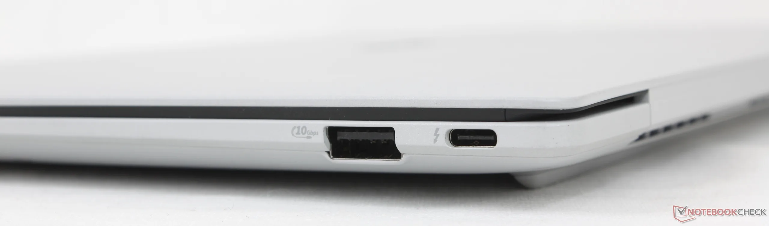 A kikötői opciók hasonlóak a ThinkPad T14s Gen 6 bár Smart Card opciók nélkül. Az Asusnál azonban értékeljük, hogy a két USB-C port a rendszer jobb és bal széle között van elosztva a könnyebb töltés érdekében. Ehhez képest a fent említett ThinkPadnél ugyanez a két USB-C port csak a bal szélén található.