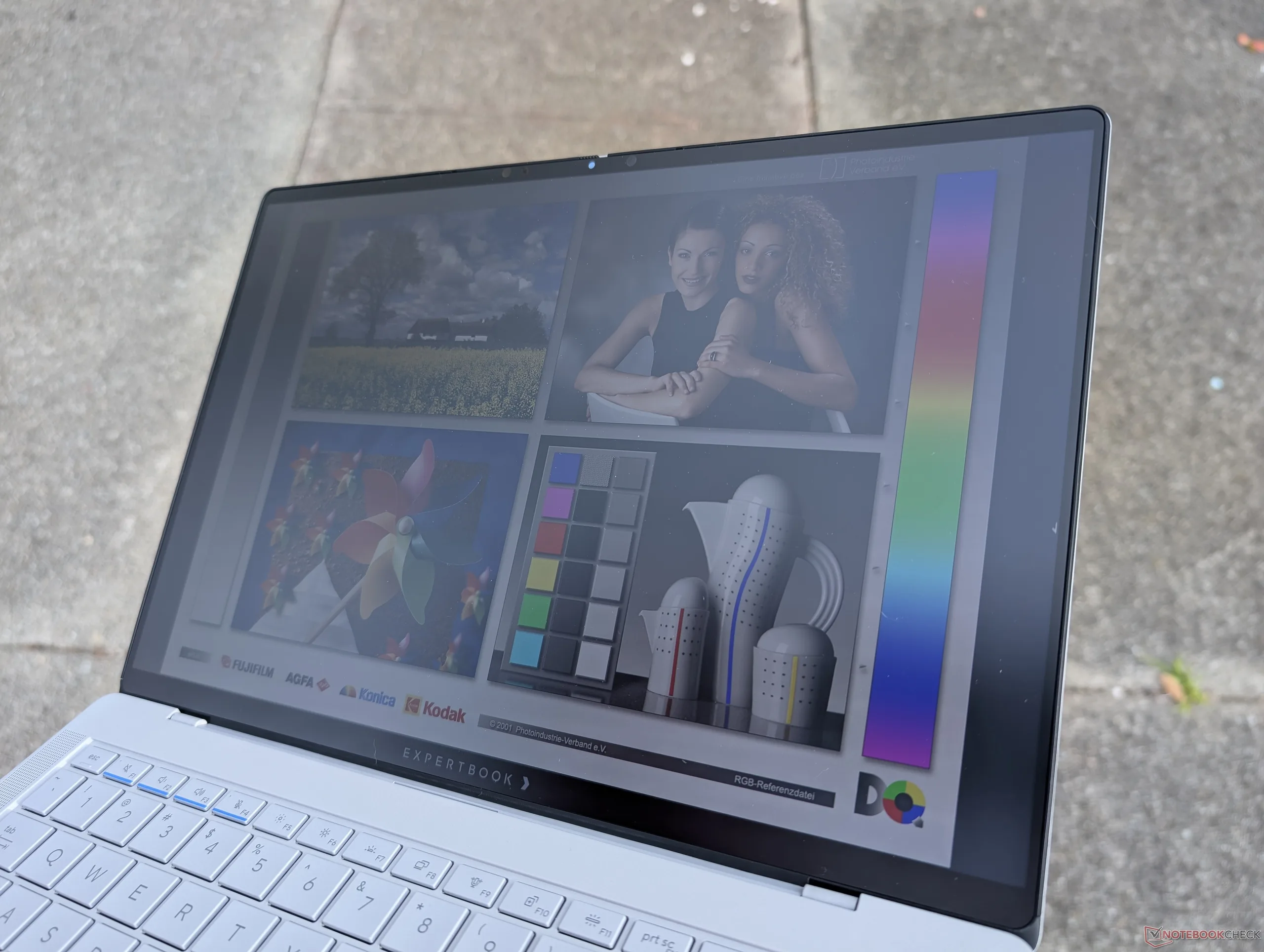 A tandem OLED egyik legfontosabb előnye a hagyományos OLED-hez képest sokkal nagyobb fényerő. HDR üzemmódban 1403 nits maximális fényerőt tudunk mérni, míg a legtöbb más laptop OLED-kijelzője csak a felénél vagy annál is alacsonyabb értéken teljesít. A magasabb fényerőszintek és az OLED-ről ismert mélyfekete szintek még élénkebb HDR-tartalmakat eredményeznek az ExpertBook Ultra esetében. A maximális fényerő egyébként 600 nits-re korlátozódik az alapértelmezett SDR módban.