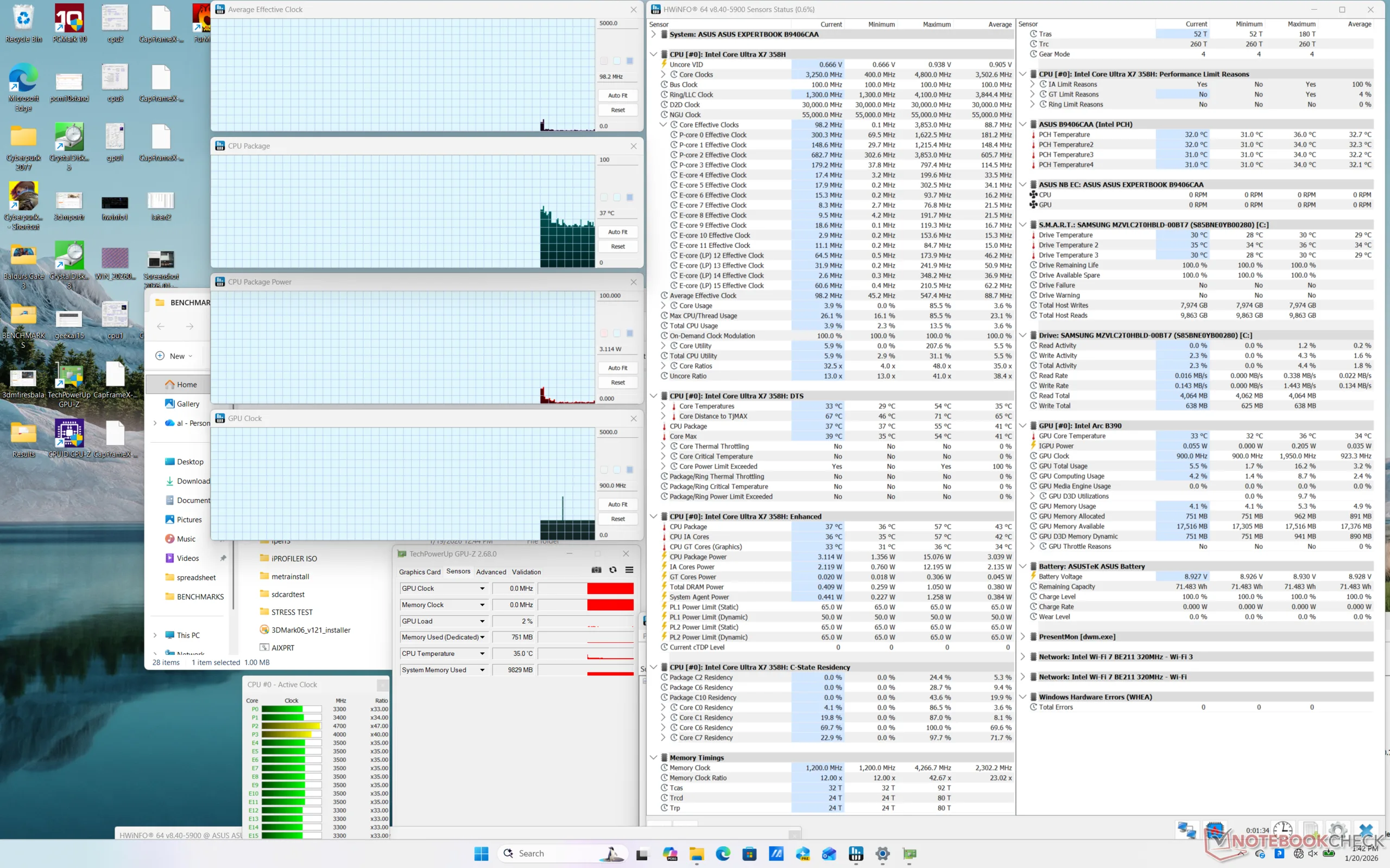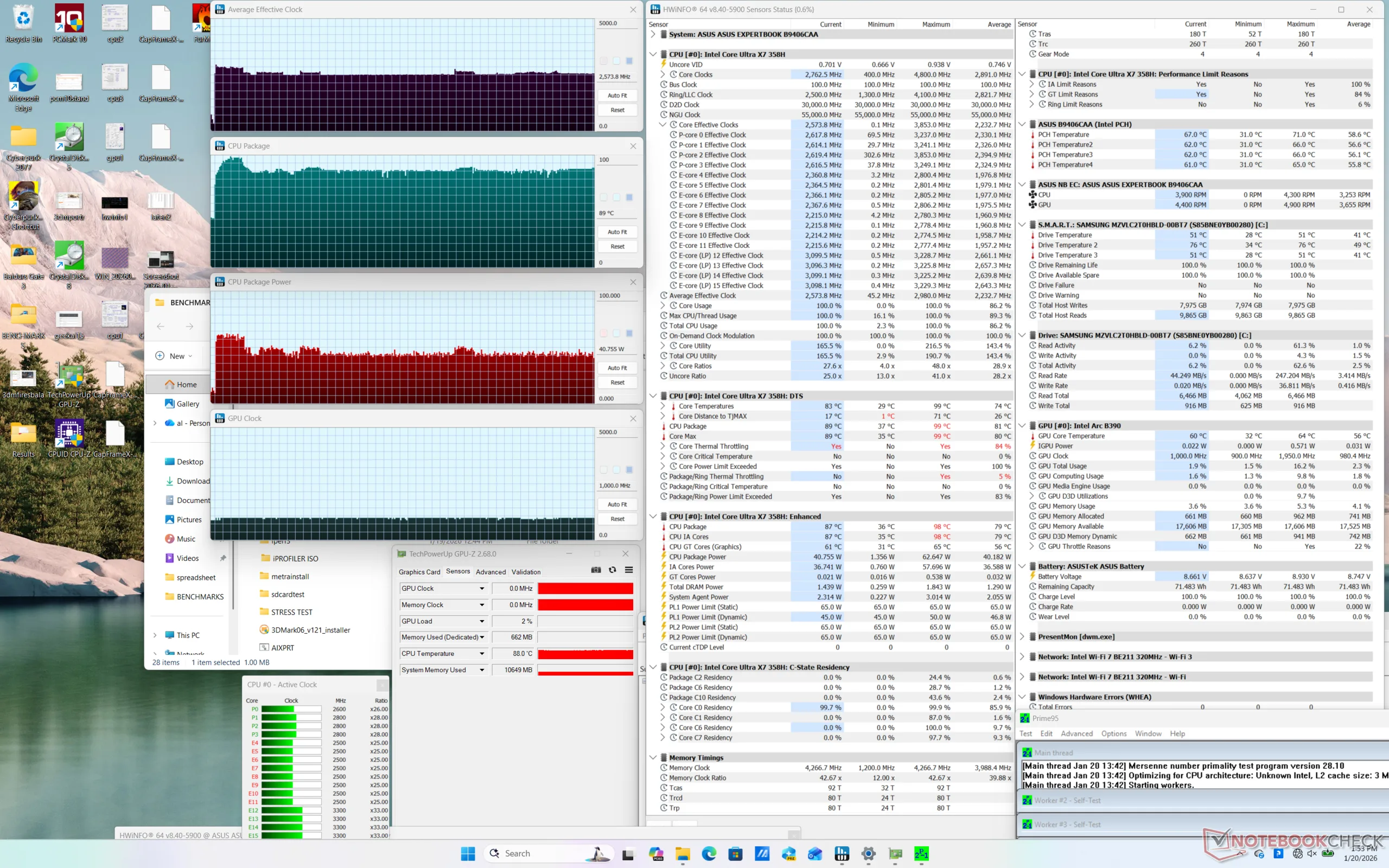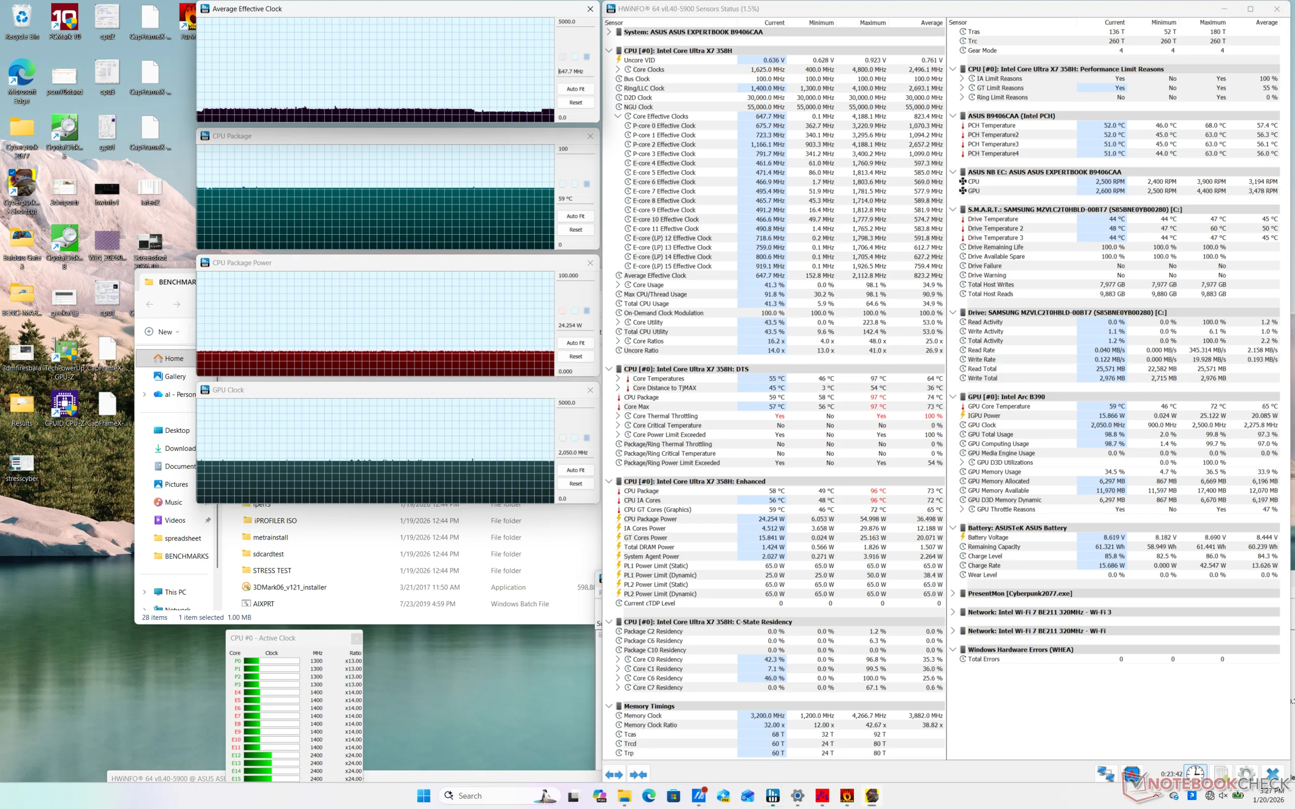 Az összfogyasztás meglehetősen hasonló a Ryzen AI 9-cel hajtott Lenovo ThinkPad P14s Gen 6-hoz, bár van néhány fontos észrevétel. Először is, a Cyberpunk 2077 futtatása körülbelül 61 W-ot igényel az Asuson, míg a Lenovo 56 W-ot, annak ellenére, hogy az Arc B890 akár 80 százalékkal gyorsabban teljesít, ami a grafika tekintetében jelentős teljesítmény-gyorsabb teljesítmény-gyorsabb teljesítményt jelent. Másrészt azonban a Prime95 futtatása átlagosan 64 W-ot fogyaszt, míg ugyanez a Lenovo 55 W-ot, ami viszonylag kisebb különbségekre utal, amikor a CPU teljesítmény/watt értékéről van szó.