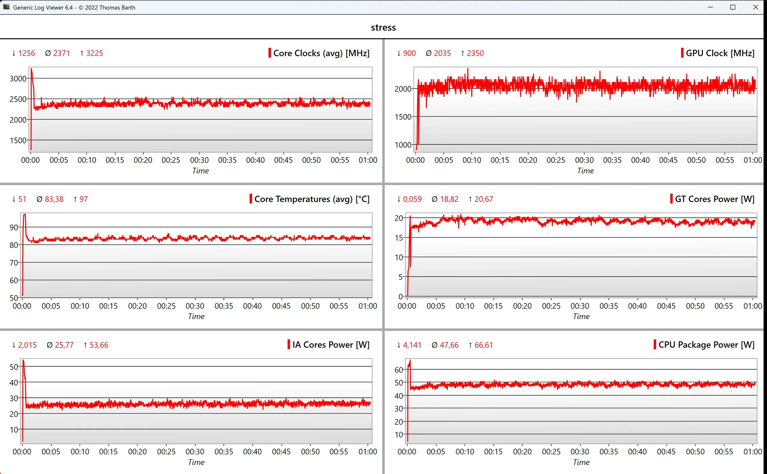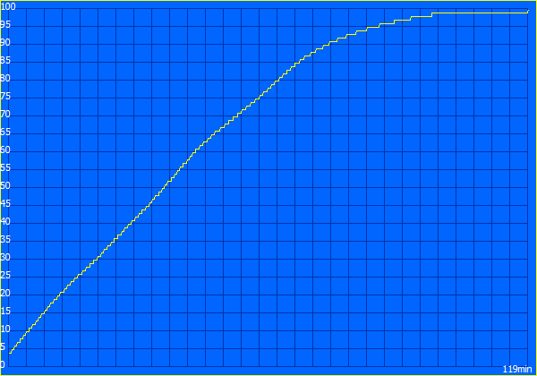 Terhelés alatt 96 wattos maximumot láthatunk, ami aztán gyorsan, körülbelül 45 másodperc után 80 wattnál kiegyenlítődik. Az EU-n kívül a Zenbook Duo 100 wattos tápegységgel kerül forgalomba, ami elég erősnek tűnik.