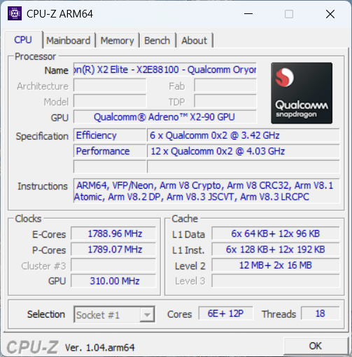 | HP OmniBook X 14 Qualcomm Snapdragon X Elite X1E-78-100 ⎘ Qualcomm SD X Adreno X1-85 3.8 TFLOPS ⎘ 16 GB Memória, 1024 GB SSD | List Price: 1299€ | 1.3 kg | 14.3 mm | 14.00" 2240x1400 189 PPI IPS | |