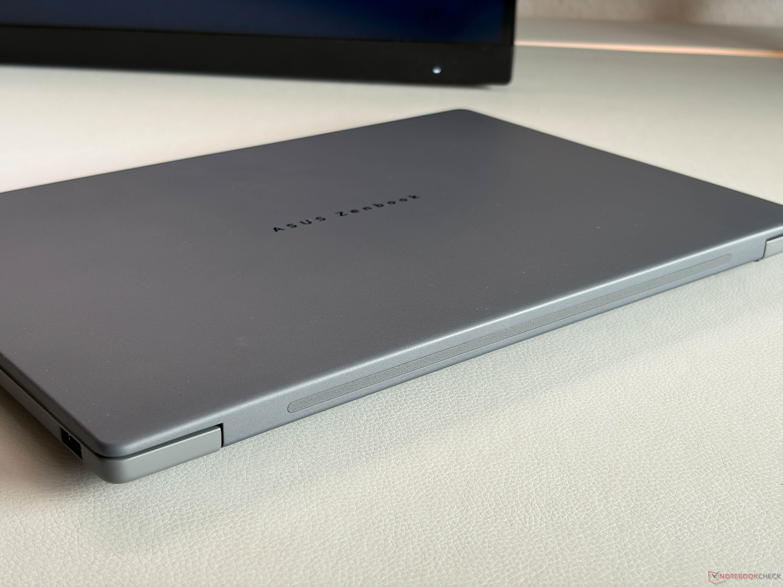 Az alvázszerkezet nem változott és az Asus továbbra is Ceralumíniumot (kerámia és alumínium kombinációja) használ, és az új Zenbook A14 ismét 1 kg alatt marad. A stabilitás továbbra is nagyon jó, de a mi tesztkészülékünk a zsanérokból származó enyhe nyikorgó hangoktól szenvedett. A zsanérok ráadásul egy kicsit túl lazák. A készüléket Iceland Gray vagy Zabriski Beige színben lehet beszerezni. A karbantartási lehetőségek továbbra is az egyetlen M.2-2280 SSD-re korlátozódnak.