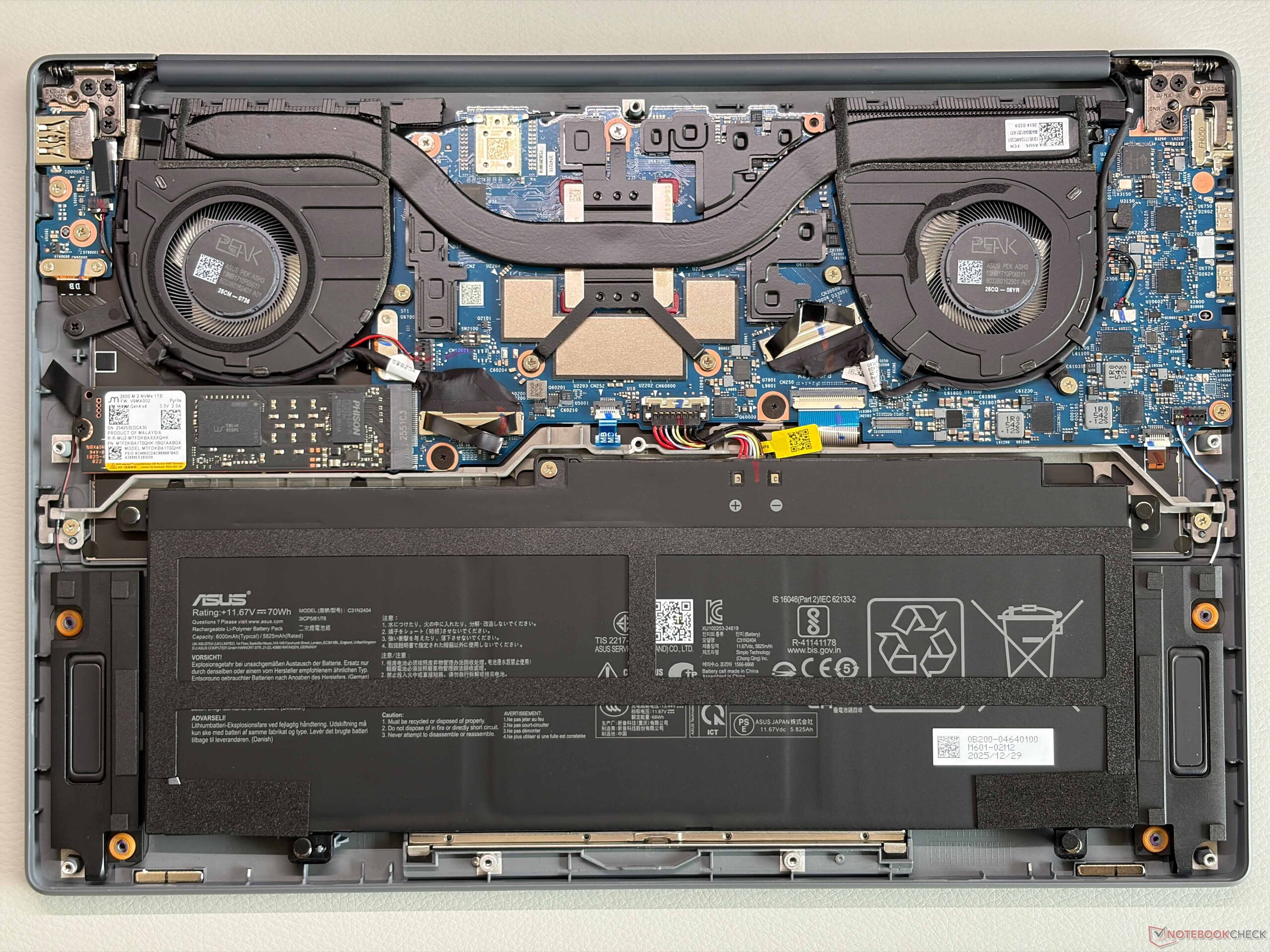 az akkumulátor üzemideje a 70 Wh-s akkumulátorral még mindig nagyon jó, és a Wi-Fi tesztünkben 150 nits-en 16 órát határoztunk meg, ami nagyjából megegyezik a MacBook Air 13 M5-ösével. A panel maximális fényerejénél azonban a Zenbook még így is majdnem 11 órát bír ki, tehát 4 órával többet, mint a MacBook.