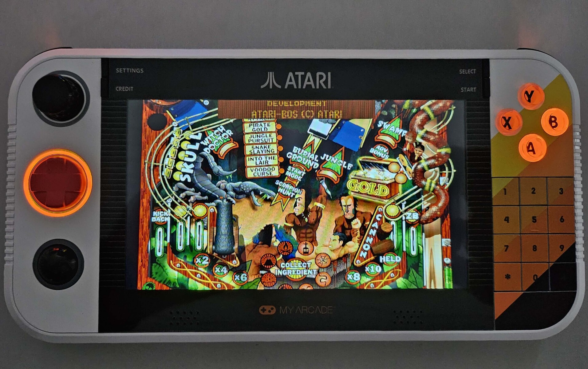 Minden játék többféle vezérlési konfigurációt kínál, amelyek a játék során bármikor megtekinthetők és beállíthatók. Az Atari és a My Arcade által kifejlesztett SmartGlow nevű világítási funkció színnel emeli ki, hogy az adott játékban éppen mely kezelőszervek aktívak és szükségesek. A 7 hüvelykes (kb. 18 cm) kijelző kellően nagy a retro játékokhoz, bár sok régebbi cím nem használja ki teljes mértékben a képernyőt. A beállítások lehetővé teszik az eredeti képarány megtartását vagy a kép megnyújtását, hogy kitöltse a kijelzőt - bár ez utóbbi természetesen torzítást eredményez.
