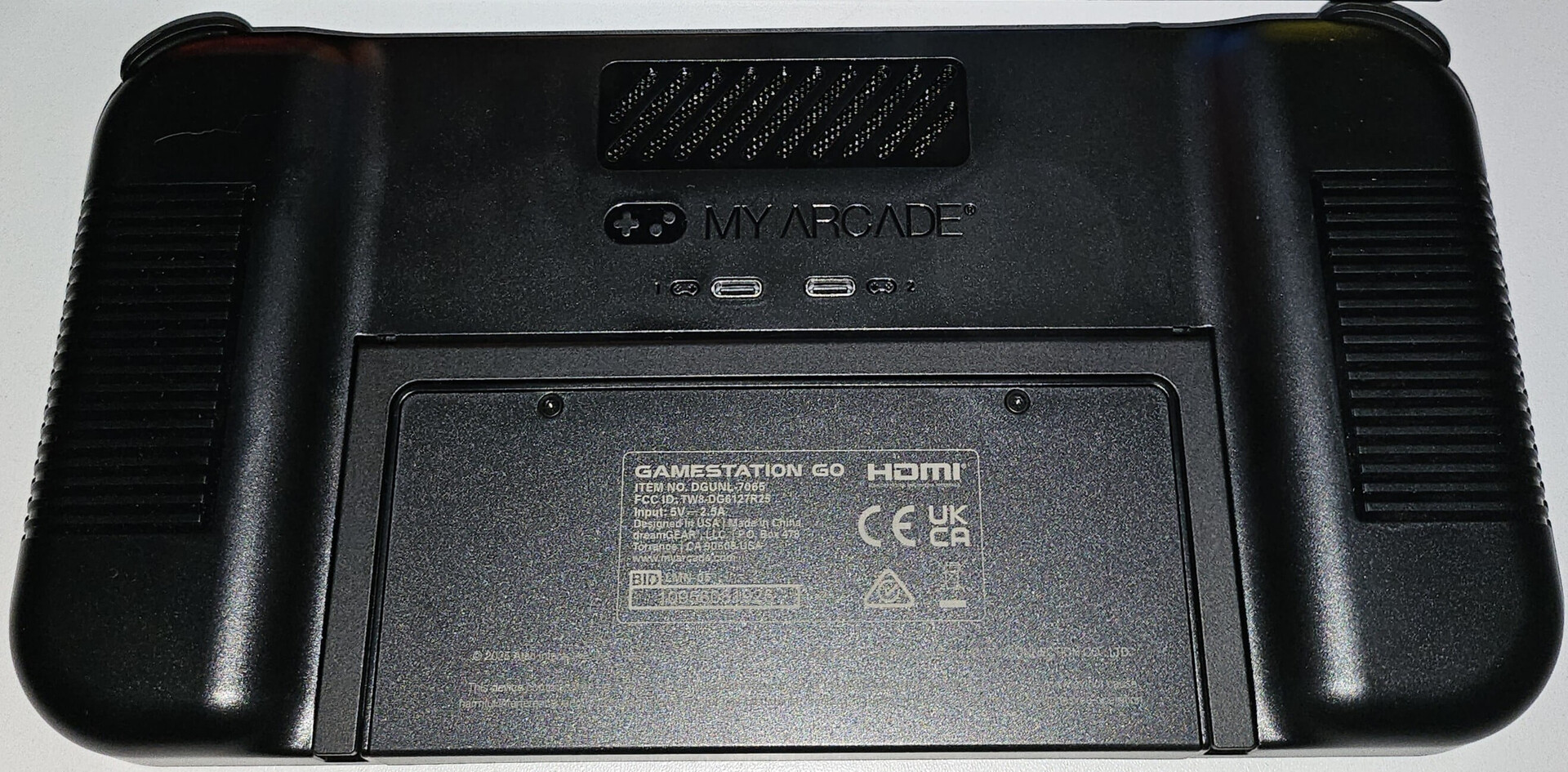 A német nyelvű használati utasítás már az amerikai dobozban található. A promóciós szórólap két, hamarosan megjelenő vezeték nélküli vezérlőt is reklámoz - egy szabványos gamepadot, amely a Gamestation Go vezérlését követi, és egy arcade botot, amelyet harci játékokhoz terveztek. Mivel a kéziszámítógép hátoldalán két USB-C vezérlőport található, ezeknek a kiegészítőknek kábellel csatlakoztatva is működniük kell.