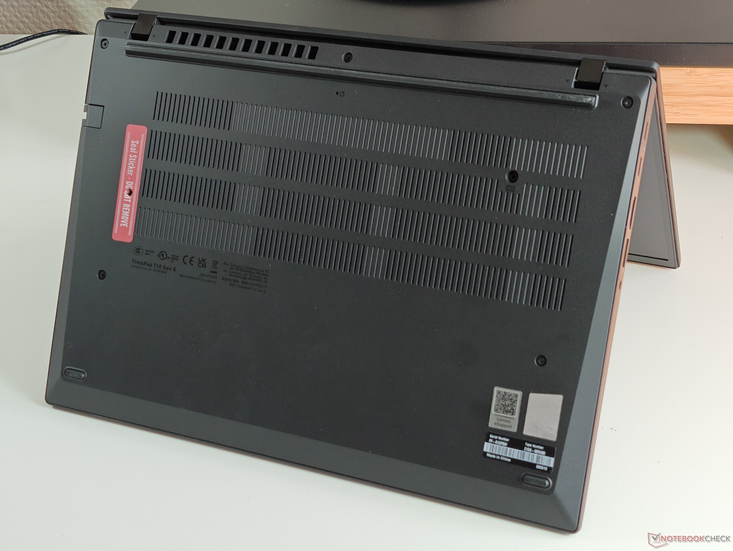 A Lenovo ThinkPad T14 Gen 6 a váz kialakítását tekintve minden bizonnyal a klasszikus fekete, dobozos ThinkPad-energiával rendelkezik - néhány modern kiegészítéssel. Ide tartozik minden bizonnyal a fedélen található kameradudor, amely egyben praktikus fogantyúként is szolgál a ThinkPad kinyitásához. Sajnos az egy kézzel történő nyitás nem lehetséges, de egyébként a ThinkPad minőség átüt. A ThinkPad T14 G6 egy robusztus és stabil PC, amelynek váza műanyagból és magnéziumból készült. Mint minden fekete ThinkPad esetében, a sima, kissé gumiszerű felület hajlamos arra, hogy elég könnyen koszolódjon.