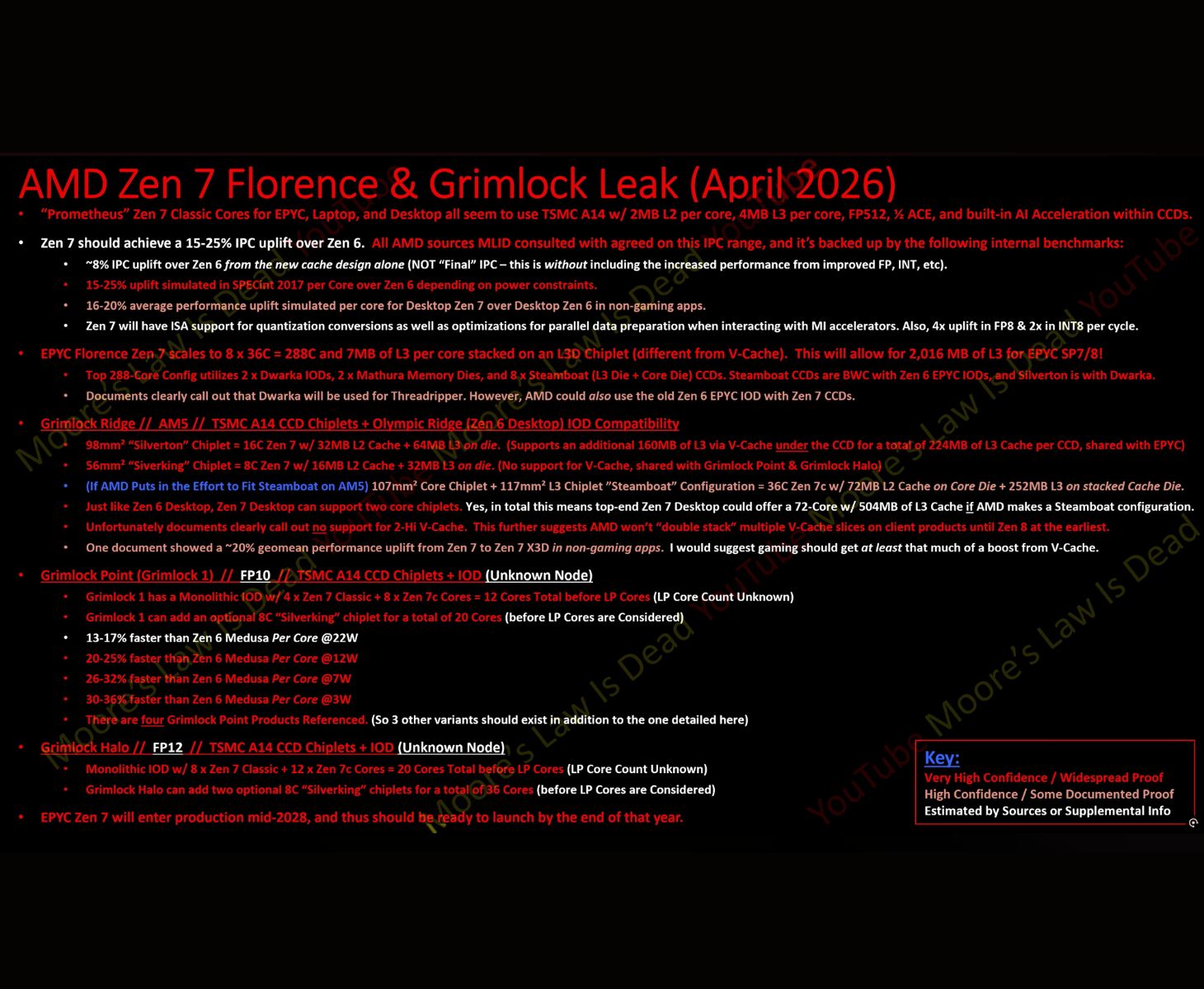 Az ismert hardverszivárogtató, Tom, a Moore's Law Is Dead című YouTube-on futó műsor házigazdája által megosztott diaképek szerint, Az AMD Zen 7 EPYC zászlóshajója, kódnevén Florence, két "Dwarka" I/O- és két "Mathura" memóriadarabra támaszkodik, mindkettőt jelentős történelmi és spirituális jelentőségű ősi indiai városokról nevezték el, amelyekhez akár nyolc 36 magos Steamboat CCD párosul, így foglalatonként 288 magot kapunk.