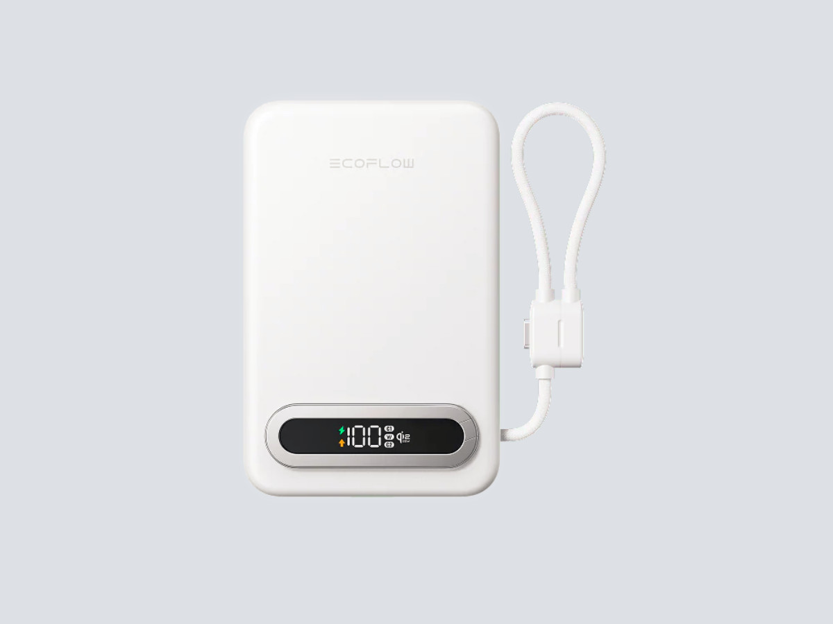 A vezeték nélküli töltés mellett a power bank egy integrált 36W-os USB-C kábelt és egy extra USB-C portot is tartalmaz, így egyszerre akár három eszközt is feltölthet. Az EcoFlow egy intelligens kijelzőt is hozzáadott, amely mutatja az akkumulátor kapacitását, teljesítményét és a hátralévő töltési időt, valamint egy állványt a kéz nélküli használathoz. Az összes extra funkció ellenére még mindig vékonyabb, mint a Ugreen 10,000mAh MagFlow Magnetic Wireless Power Bank 10,000mAh MagFlow mágneses vezeték nélküli energiabankja ( 21 vs. 15,95 mm), és fehér és fekete változatban is kapható.