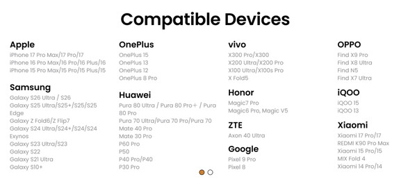 Bár az Insta360 a Snapet iPhone-okkal hirdeti, az új kiegészítő kompatibilis az USB Type-C porttal rendelkező Android okostelefonokkal is. A hivatalosan kompatibilis készülékek teljes listáját az alábbi képen találja. Az Insta360 Snap ára 79,99 dollárról indul, beépített világítással pedig 89,99 dollárra emelkedik. Kérjük, tekintse meg a Insta360 weboldalát további részletekért.