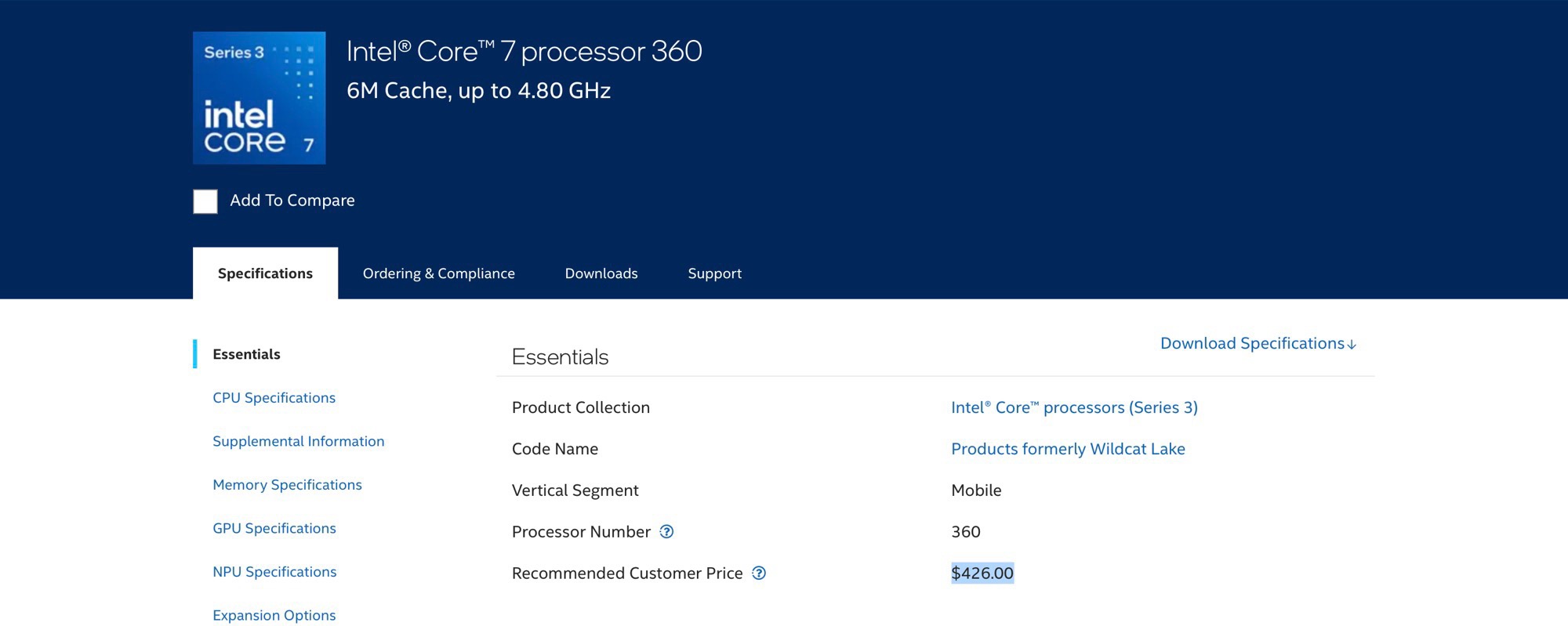 Eszerint egy Intel Core 5 320 340 dollárba kerül, míg az Intel 426 dollárt kér egy Core 7 360-ért. Ezek az árak 1000 darabos vásárlás esetén érvényesek; nagyobb mennyiségek vásárlása esetén kedvezményekre lehet számítani. A chipek tehát meglepően drágák, hiszen az Intel teljesítményorientált laptop processzorai néhány évvel ezelőtt még hasonló áron voltak kaphatók. A gyorsabb "Panther Lake" chipek árait az Intel nem közli