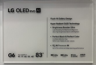 Nem meglepő módon a G széria marad a galériás kialakításnál, amely lehetővé teszi, hogy az okostévé a falhoz süllyesztve legyen felszerelhető. Az LG G6 OLED 48, 55, 65, 77, 83 és 97 hüvelykes képernyőméretekkel lesz elérhető. Az LG ezeket a televíziókat egy új tandem OLED panellel szereli fel, amelyet "Hyper Radiant" OLED panelként, "Brightness Booster Ultra" fényerőnövelővel fog forgalmazni. Ez a technológia a jelek szerint 3,9-szer fényesebbé teszi a készüléket, mint a kedvezőbb árú LG B6 OLED, bár a kiszivárgott marketinganyag nem közöl pontos számokat vagy közvetlen összehasonlítást az előddel.