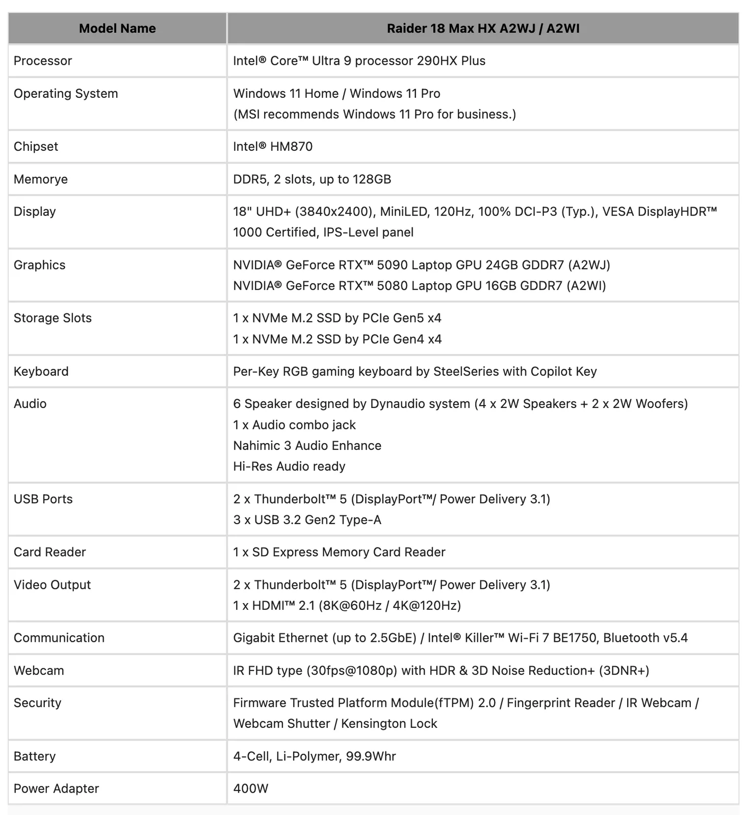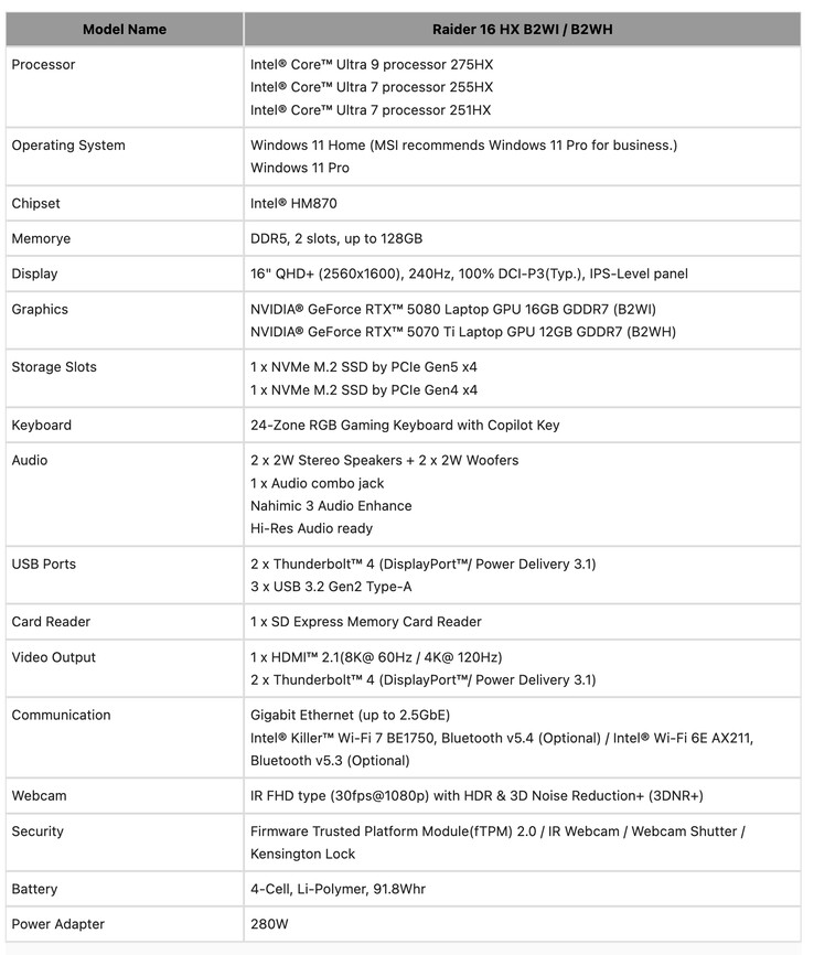 - Raider 16 Max HX B2WI