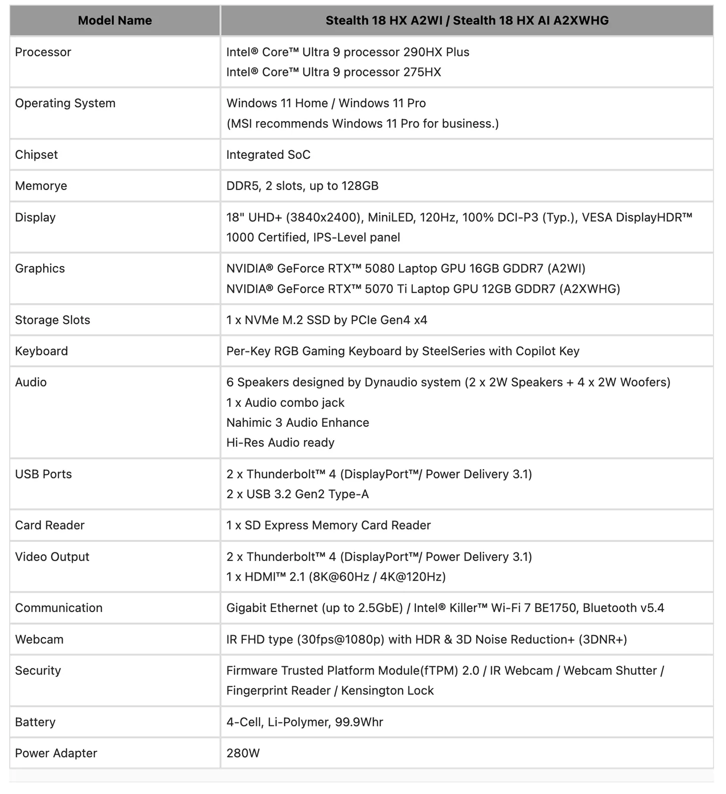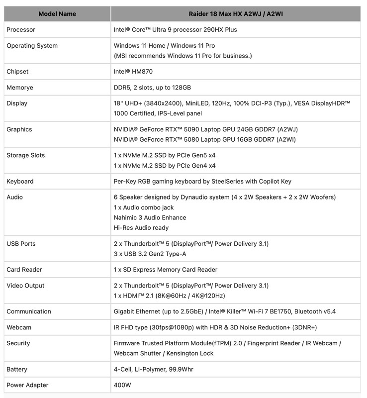 Most az MSI is csatlakozott a bulihoz nyolc új laptoppal a Raider, Stealth Titan sorozatában. Konkrétan a vállalat a következő laptopokat mutatta be, amelyek mögött az alábbiak állnak Core Ultra 9 290HX Plus processzorokkal: