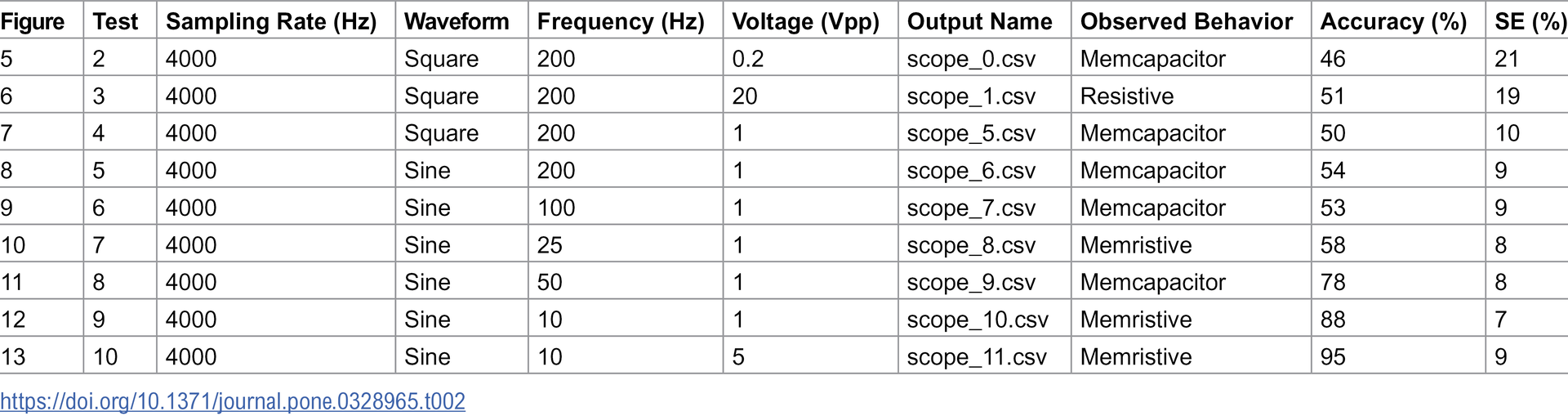 Az Arduino kártyát először arra használták, hogy négyzet- vagy szinuszhullámú feszültségeket tápláljanak a gombákba, miközben állapotukat 56k baud sebességgel olvasták ki. A hullámforma típusától, a feszültségtől, a frekvenciától és egyéb tényezőktől függően a kiolvasás pontossága 46-95 százalék között mozgott, a legjobb eredményt a 10 Hz-es 5 V-os szinuszhullám adta. Ezután egyszeri írási/olvasási műveleteket teszteltek, az eredmények 88 és 96 százalék között mozogtak.