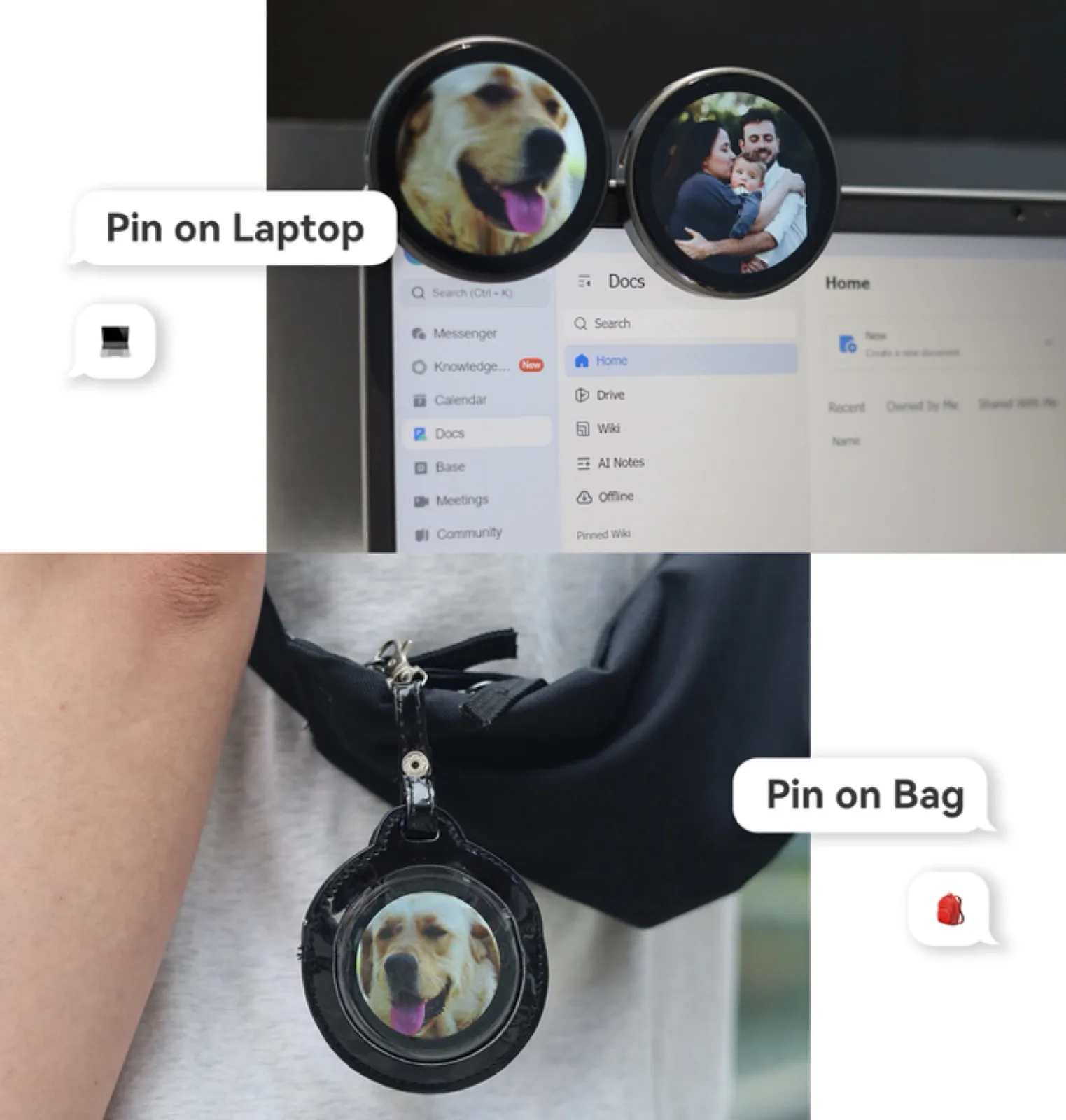 Legyen szó csapatszellemről egy sporteseményen, nyilatkozatról vagy szurkolásról, a kitűzők mindig is népszerű módja voltak a csoporttal való azonosulásnak. Az Omibo Smart Video Pin-t úgy tervezték, hogy ne kelljen folyamatosan új kitűzőket vásárolni, mivel a nyomtatott felületet egyszerűen egy kijelzővel cseréljük ki.