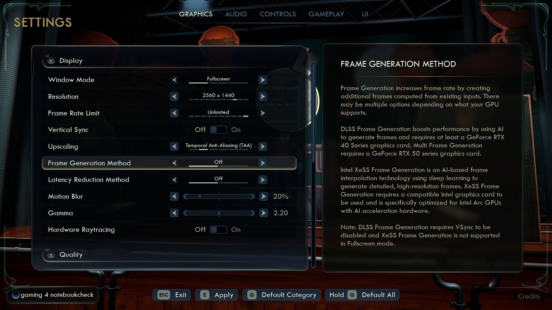 A PC-s verzió grafikai menüje lenyűgözően széleskörű, ami a teljesítményt tuningolóknak és a vizuális rajongóknak egyaránt örömet okoz. Az Outer Worlds 2 tele van modern funkciókkal, köztük olyan felskálázási lehetőségekkel, mint a TSR, XeSS, FSR és DLSS - a kompatibilis GPU-kon támogatott Multi-Frame Generation. A hardveralapú sugárkövetés opcionális funkcióként szintén elérhető. Számos előbeállítás lehetővé teszi a játékosok számára, hogy a "Grafika" szekcióban minden beállítást könnyen beállíthassanak, és a módosítások azonnal érvénybe lépnek, anélkül, hogy újraindítást igényelnének.