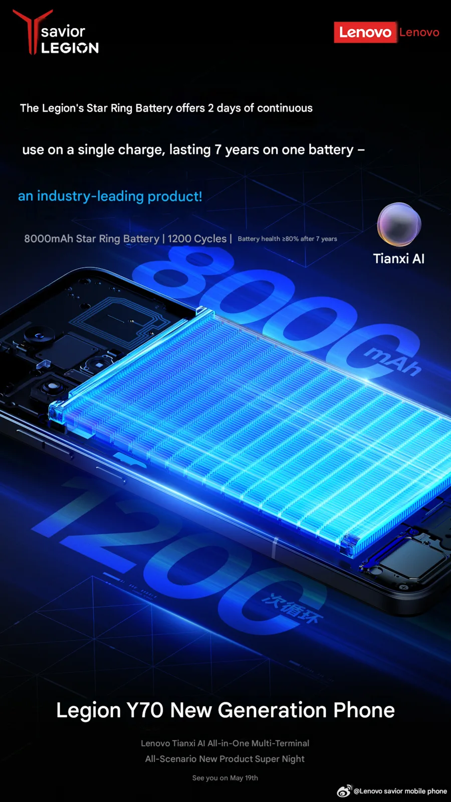 Ebben a teaserben a Lenovo azzal henceg, hogy az akkumulátor 7 év után is képes lesz megtartani kapacitásának legalább 80%-át, és az ilyen állítások nem ritkák az okostelefonok piacán. A vállalat továbbá megosztja, hogy a közelgő Legion játéktelefon "exkluzív játékantennával" van felszerelve