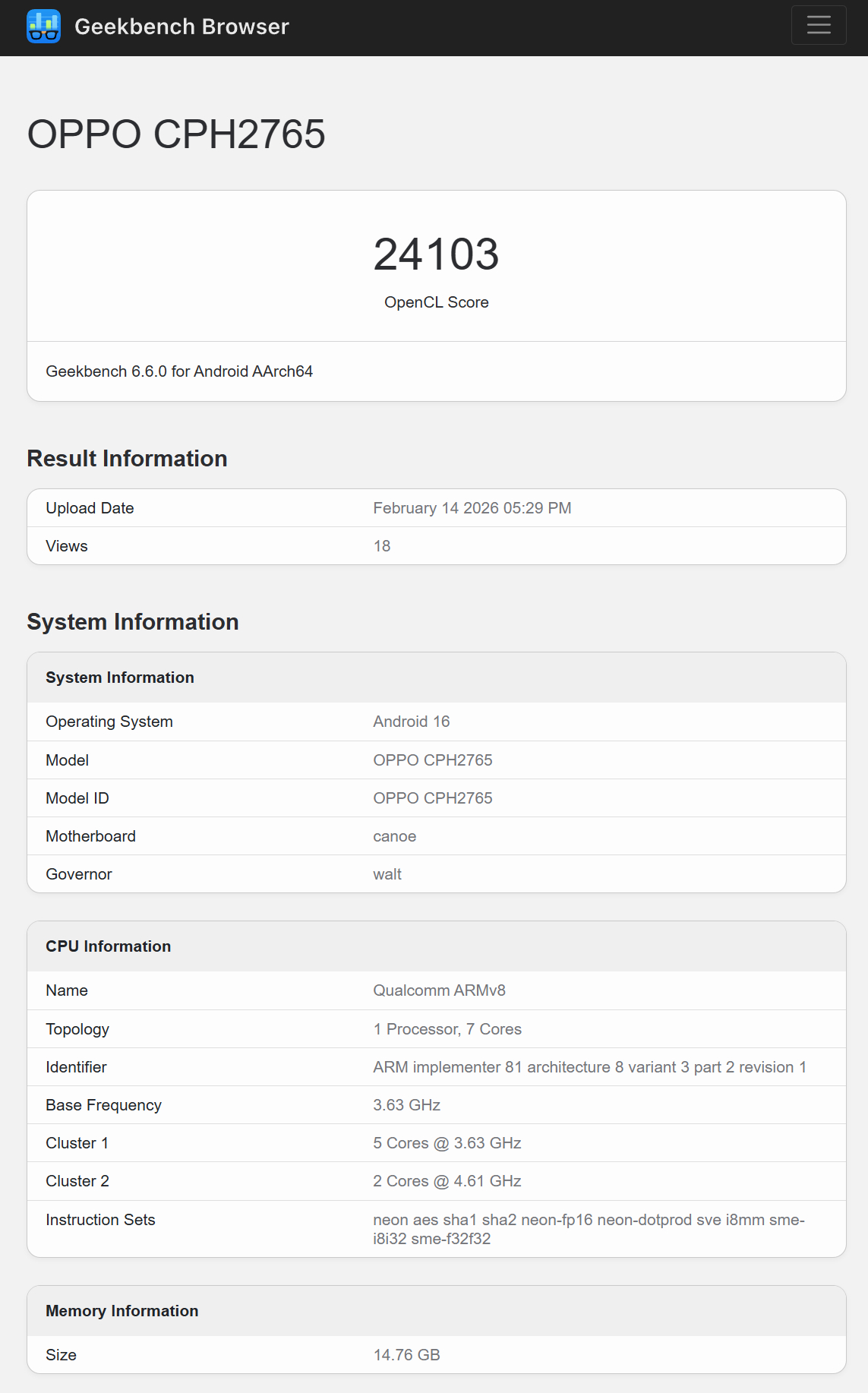 A GPU teljesítménye is érintetlenül maradt a 24,103-as OpenCL pontszámmal. Egyébként ezzel a pontszámmal a 7-magos változat az élmezőnyhöz közel végezne a Poco F8 Ultra és a RedMagic 11 Pro. A többmagos teljesítmény azonban szenved. Alapján összehasonlító tesztjeink alapjánez a 7-magos változat a Geekbench 6.5 többmagos teszteken mintegy 17%-kal marad el 8-magos testvérétől.
