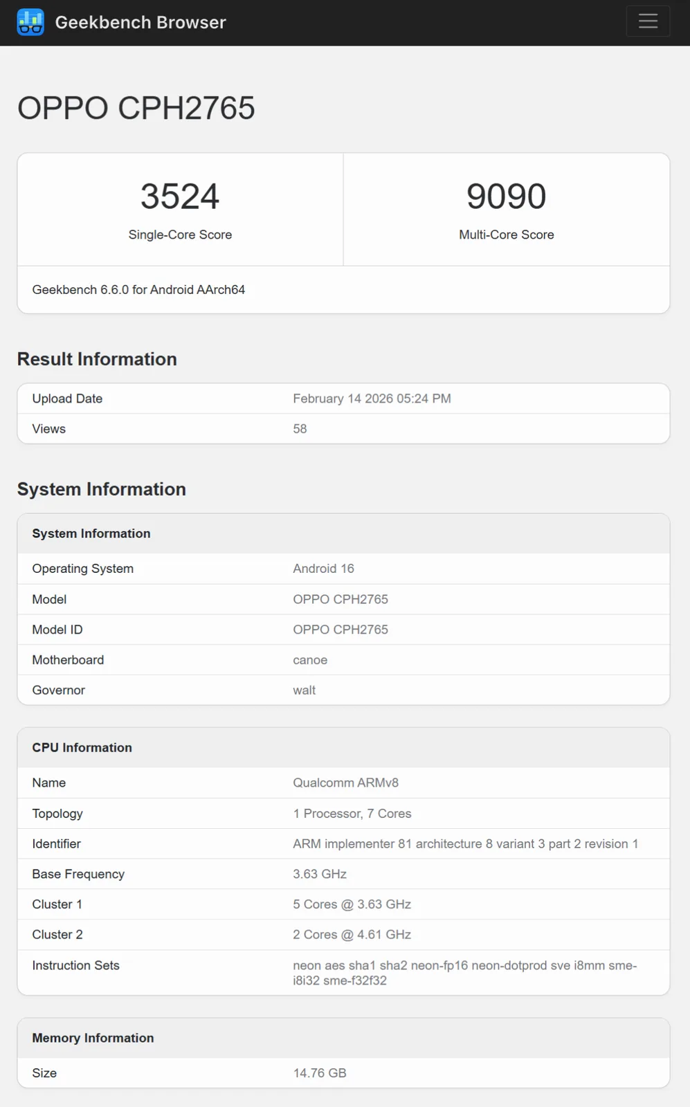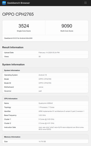 Hatékony elődjéhez hasonlóan ez az új Snapdragon 8 Elite Gen 5 változat is elhagy egy teljesítménymagot, hogy a 3,6 GHz-es órajel megtartása mellett elérje a 7 magot. Hasonlóképpen, a 4,6 GHz-es órajelek megmaradnak a Prime magoknál. Ennek eredményeképpen az új változat egymagos teljesítménye megfelel annak, amit a Snapdragon 8 Elite Gen 5-től elvárhatunk. 3.524 ponttal a 7-magos változat mégis a második legalsó helyre kerülne a listánkon Snapdragon 8 Elite Gen 5 adatbázisunkban megelőzve a OnePlus 15.