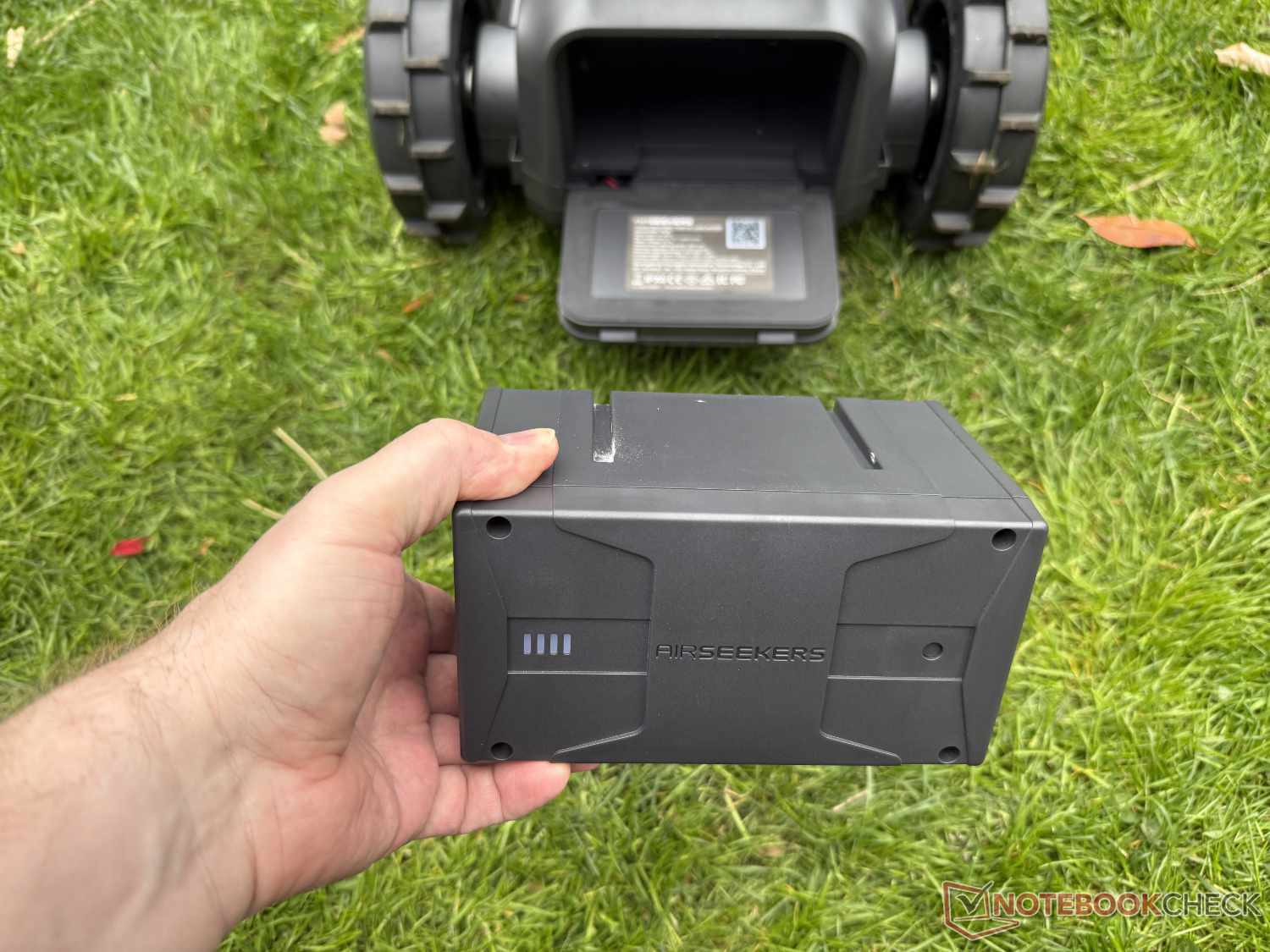A gyártó három órás üzemidőt ígér a hatalmas, 15 Ah-s akkumulátorral. A gyakorlatban az Airseekers Tron megdöntötte ezt az időt, körülbelül 350 négyzetmétert kaszált le RTK navigációval és alapbeállításokkal. Elméletileg még nagyobb terület is elérhető lett volna, ha nem váltogatja gyakran a pozícióját kaszálás nélkül és kevés rendszerrel.