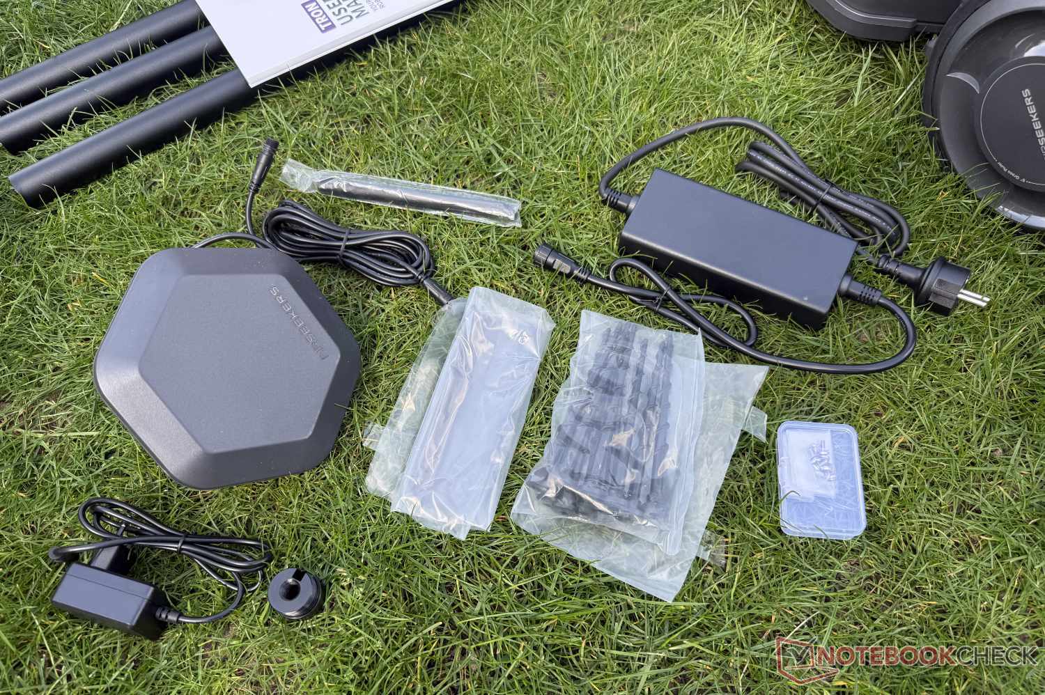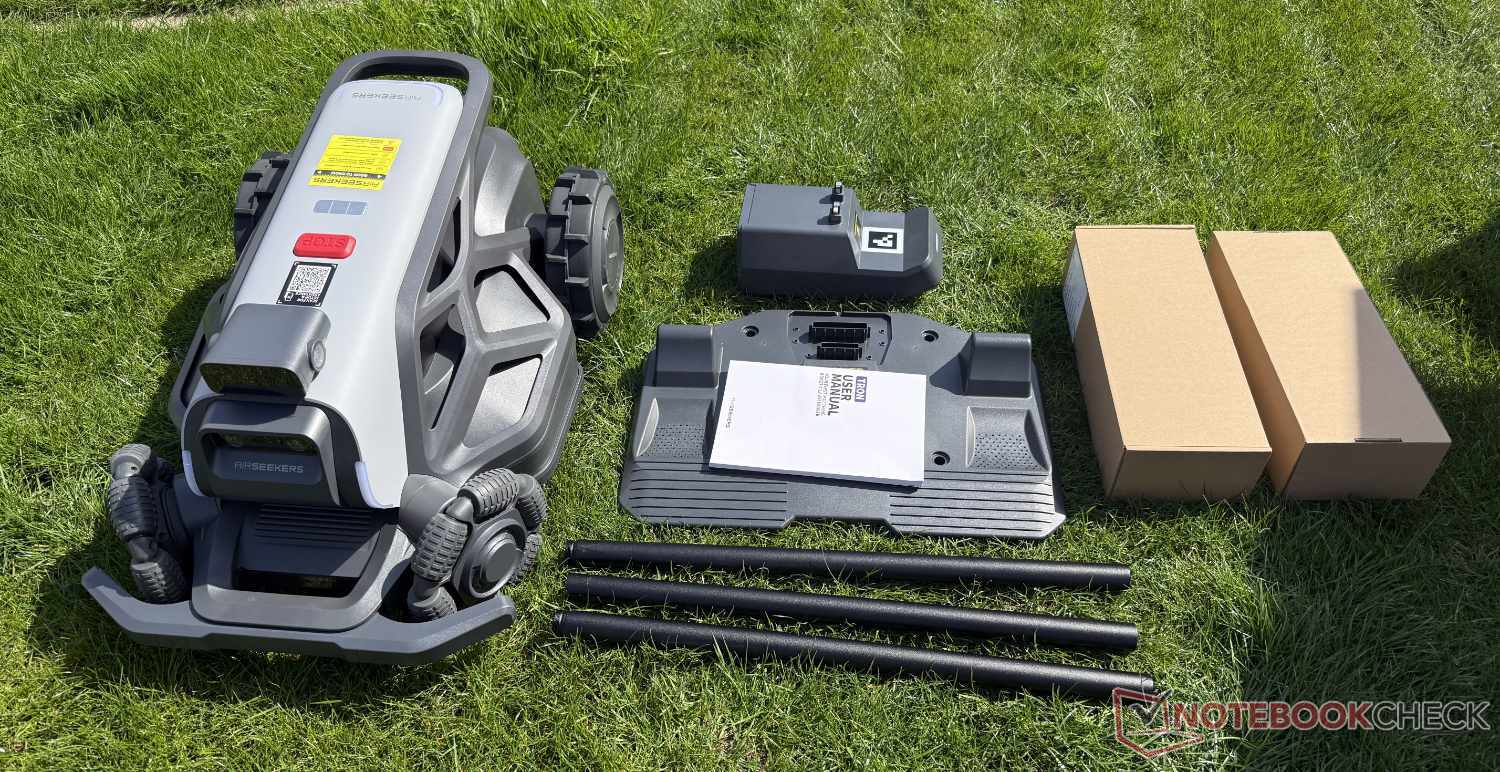 A szállítási terjedelem számos alkatrészt tartalmaz. A robotfűnyíró mellett a háromrészes csővel és földtüskével ellátott RTK bázisállomás, a töltőállomás (amelyet még össze kell csavarozni), két töltő, hat tartalék penge, szerszámok és egy védőlemez található a 80 x 50 x 45 cm-es, 32 kg súlyú dobozban.