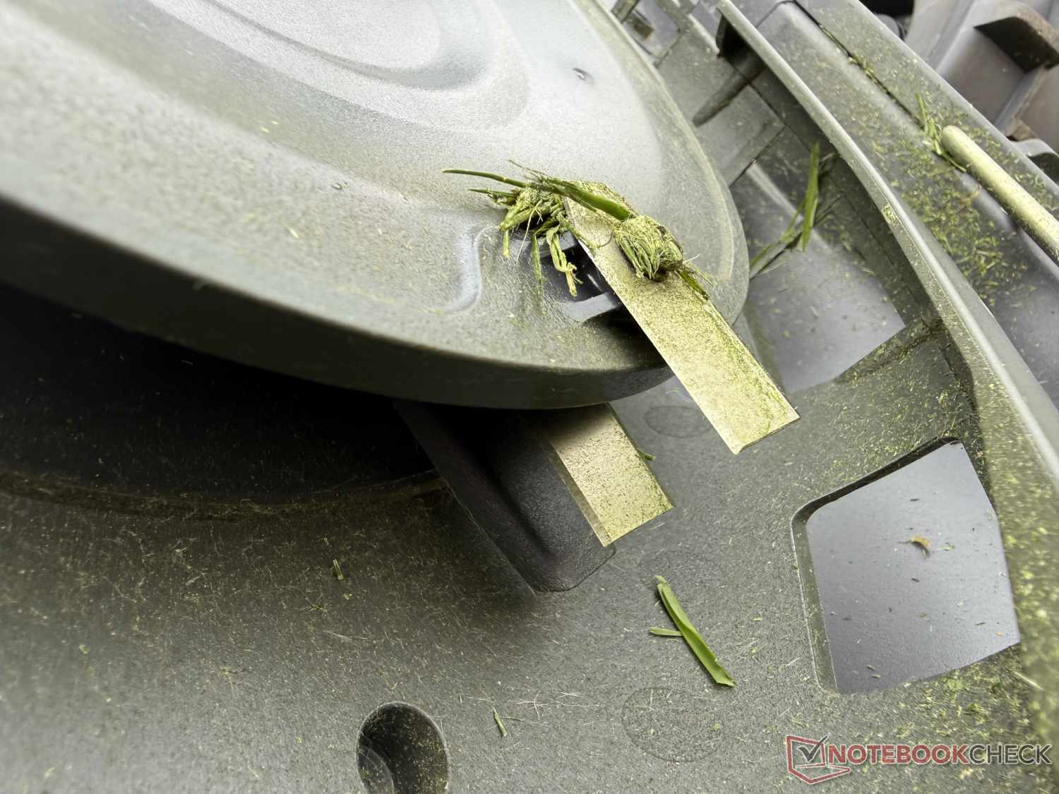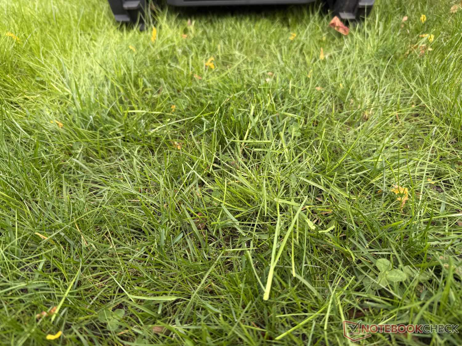 A gyártó által ígért mulcsozás azonban a gyakorlatban csak korlátozottan működött. Sok hosszabb szár maradt a gyepen. Ha ezt nem szeretné, akkor vagy előbb magas füvet kell előkaszálni (mint más modelleknél), vagy fokozatosan csökkenteni a jelentős vágási magasságot 9 cm-ről.