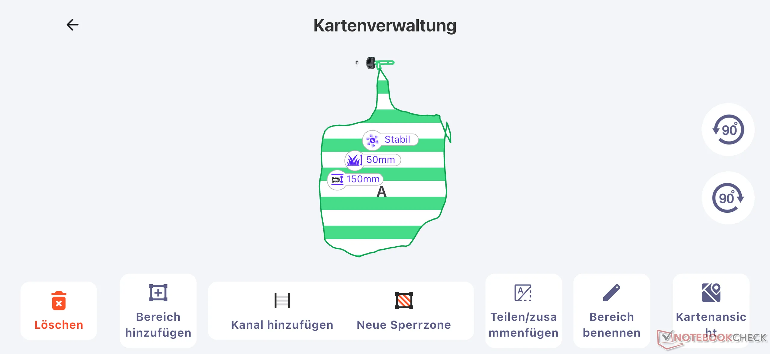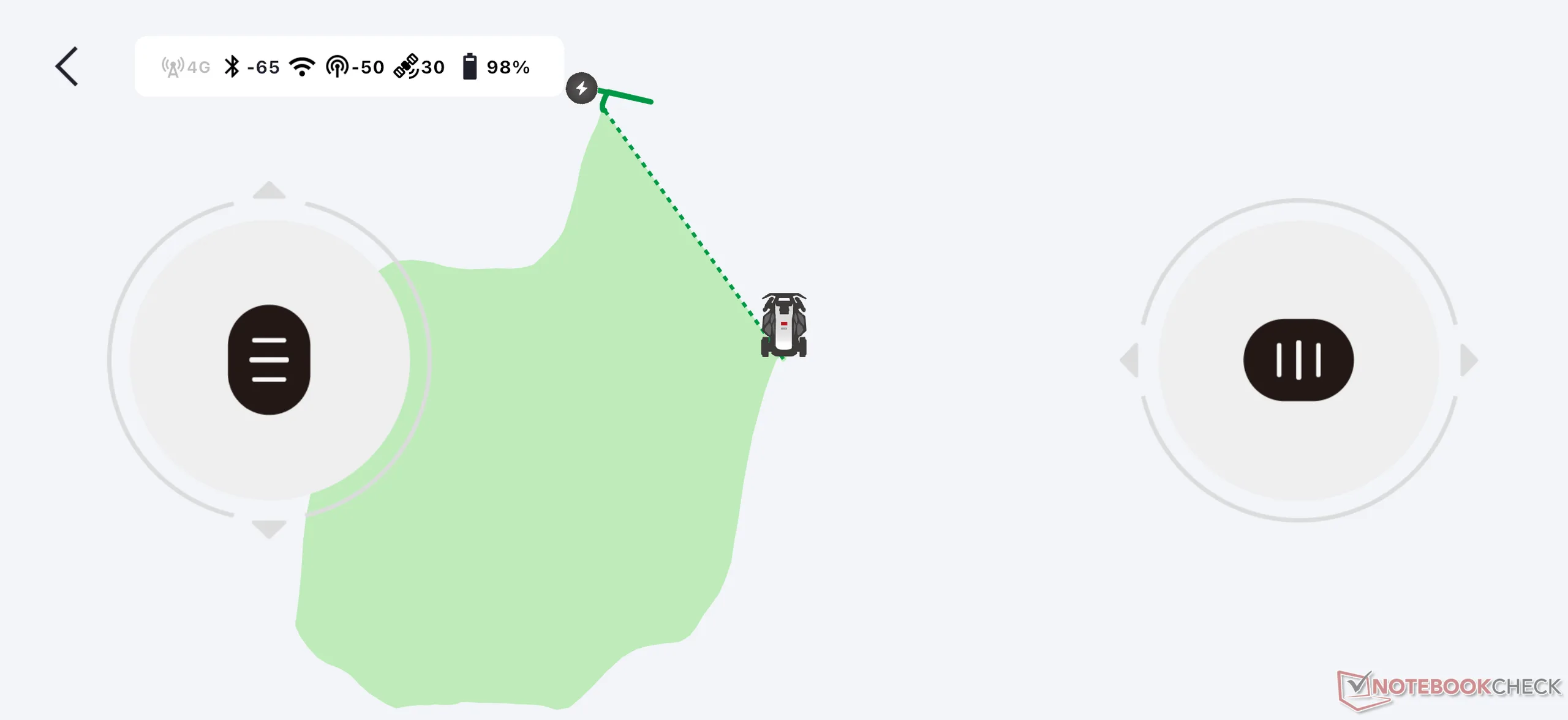 Ezt követi a kötelező feltérképezési kör. Ennek során a robotkaszát egyszer kell a kijelzőn lévő két virtuális joystick segítségével a gyep szélén manőverezni. Sajnos a robot nagyon érzékenyen reagál az okostelefon érintőképernyőjén történő bevitelre. Ez gyorsan túlreagáláshoz vezethet, például túl gyorsan vezet vagy túl élesen fordul, ami rontja a térkép pontosságát.