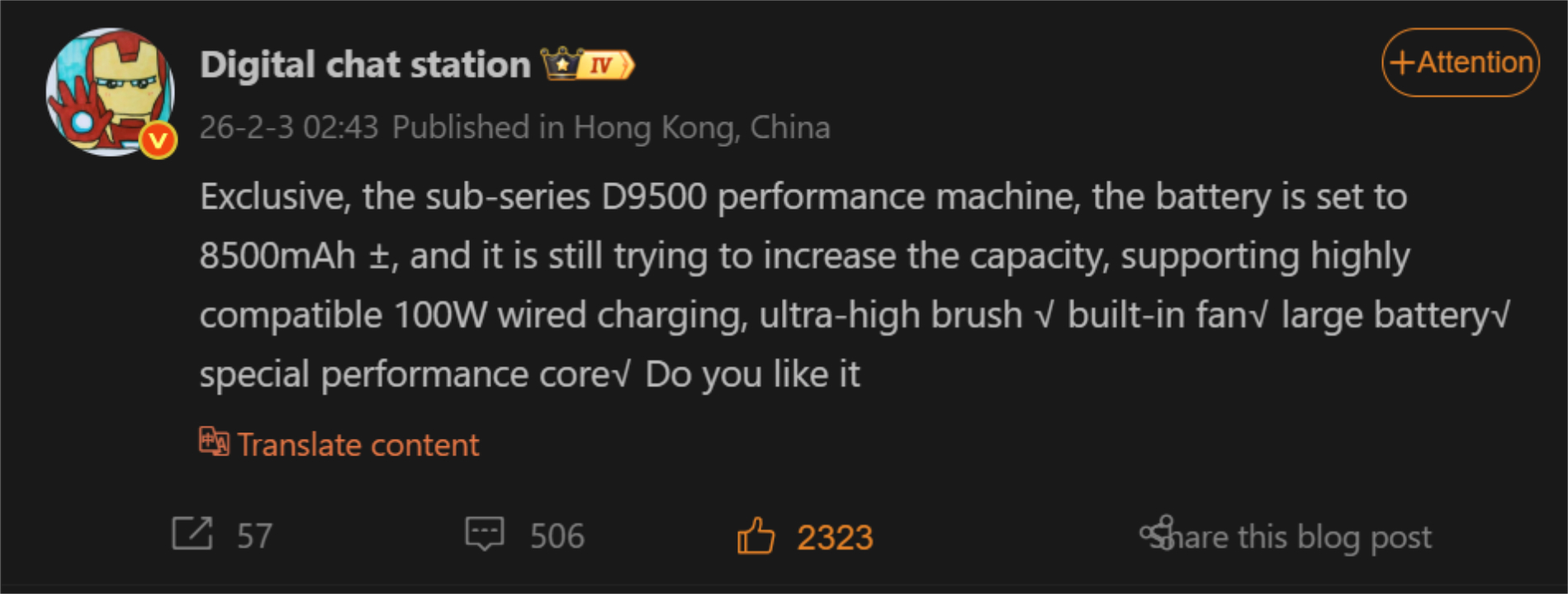 Továbbá a Digital Chat Station jelzi, hogy a Xiaomi a Redmi K90 Ultra-t egy "Dimensity 9500-as alszériás teljesítményű modellel" fejleszti. Ebből arra következtethetünk, hogy a kiszivárogtató a még meg nem jelent Dimensity 9500+-ra gondol, nem pedig a kisebbik Dimensity 9500s-re, amely a Redmi Turbo 5 Max. A bizonyítékok arra utalnak, hogy a Redmi K90 Ultra beépített ventilátorral is rendelkezik majd, ellentétben elődeivel.