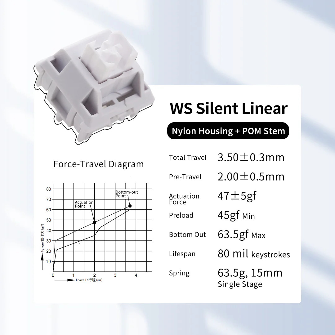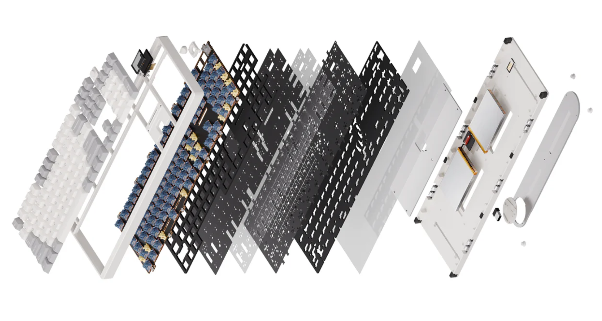 Felfrissítésként az ND104 egy teljes alumínium váz köré épül, három üzemmódú csatlakozási lehetőséggel (USB-C, Bluetooth 5.4 és 2,4 GHz-es vezeték nélküli), valamint beépített számológép billentyűvel és kijelzővel a számtábla felett. A csendesebb működés érdekében WS Breeze és Silent Linear kapcsolókat is használ (lásd alább), és több belső csillapító réteget tartalmaz a zajcsökkentés érdekében. A billentyűzet néhány moduláris kialakítású elemmel is rendelkezik, beleértve az LCD-t, a billentyűket és a gombot, amelyek a felhasználó által preferált elrendezés szerint eltávolíthatók/cserélhetők.