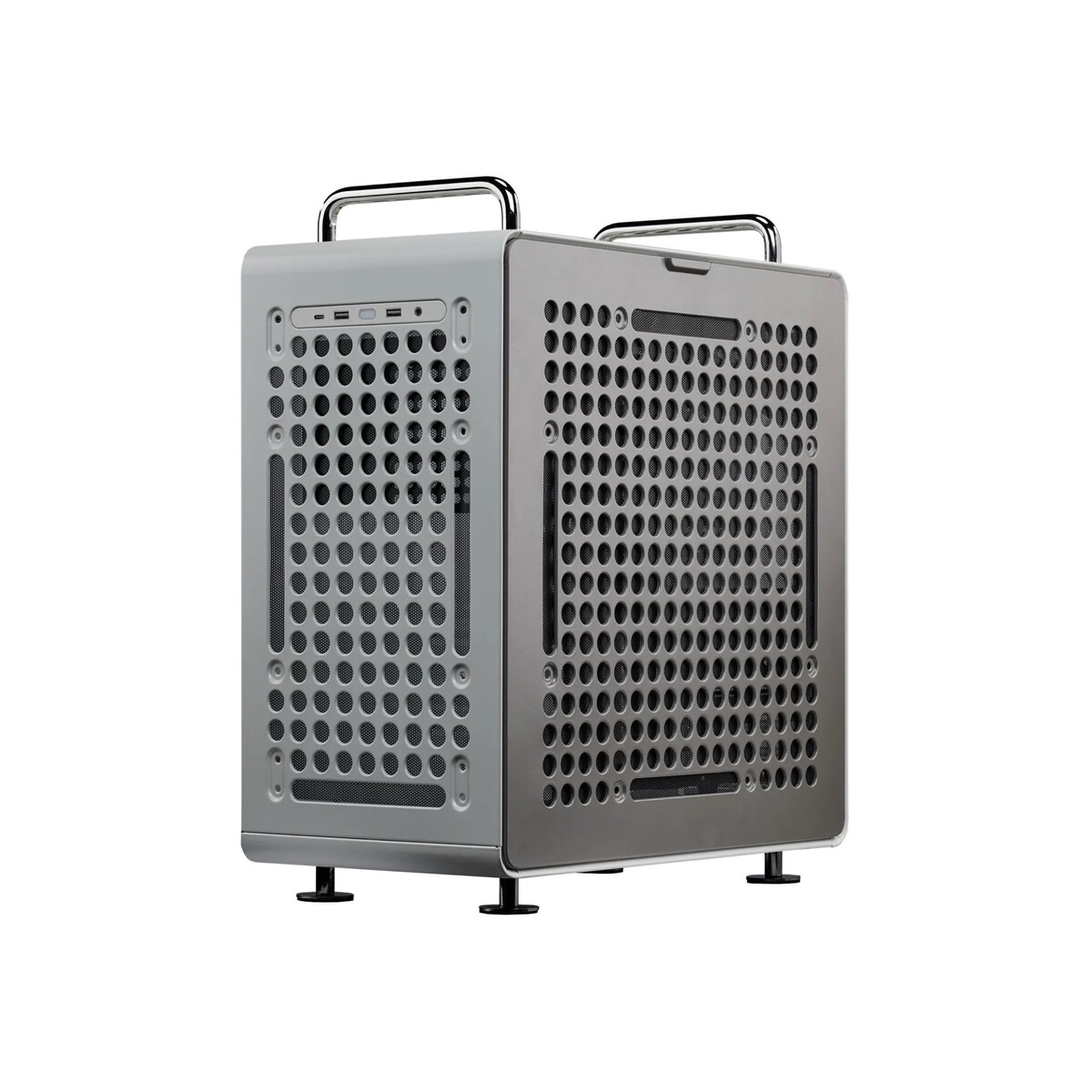 Az új Cooler Master QUBE 540-et egy rendkívül sokoldalúan felhasználható PC házként hirdetik, viszonylag alacsony áron. Méretei (42,5 x 42,5 x 22,5 cm) kompatibilissé teszik az ITX és E-ATX formátumú alaplapokkal, valamint az akár 41,5 cm hosszú grafikus kártyákkal. Az elülső, hátsó oldalon található nagy kör alakú nyílások segítségével a tartozékok közvetlenül a tokhoz rögzíthetők.