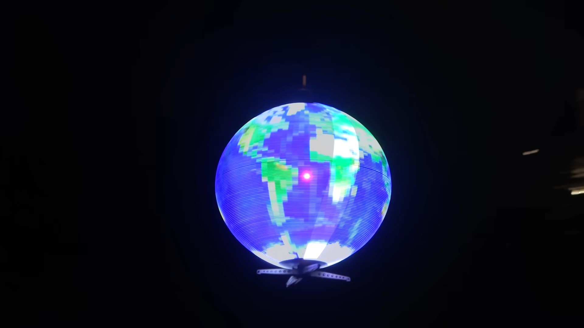 A kijelző pörgéséhez egy motort és egy, a drón tengelyére erősített fogaskerékrendszert használt. Ez rémálommá tette a stabilitást, mivel a drón a kijelzővel ellentétes irányban is pörgött. A probléma megoldására két propellert erősített a tengelyre, amelyek a kijelzővel azonos irányban forogtak, így ellensúlyozták a fogaskerékrendszer által okozott pörgést, és a drón tengelyét a helyén tartották.