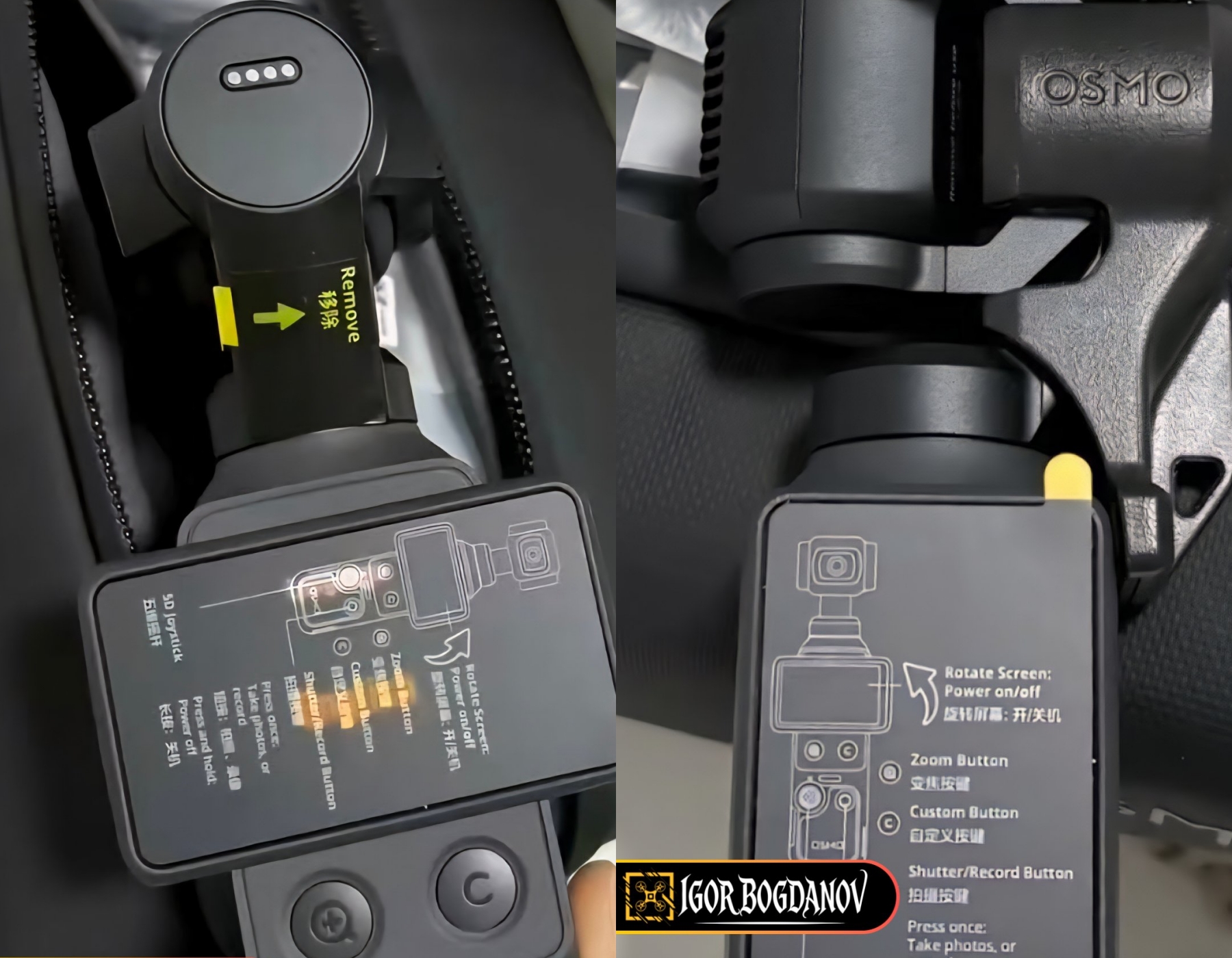 A legújabb DJI Osmo Pocket 4 képszivárgások (Gemini segítségével felskálázva), a vlogging kamera gimbal védő vezető matricáin lévő szöveget mutatják, megerősítve az új gombok mögött rejlő funkcionalitást.
