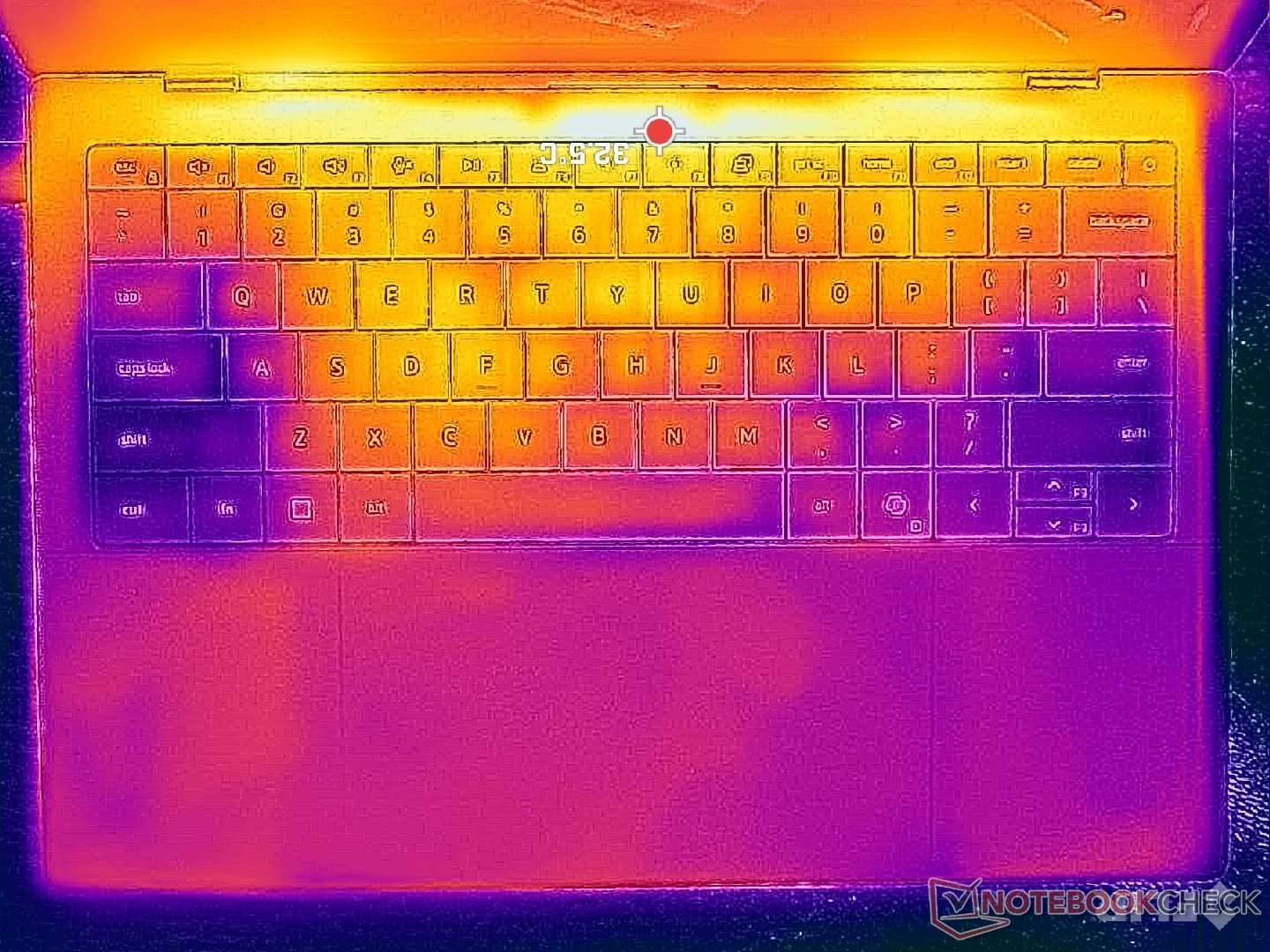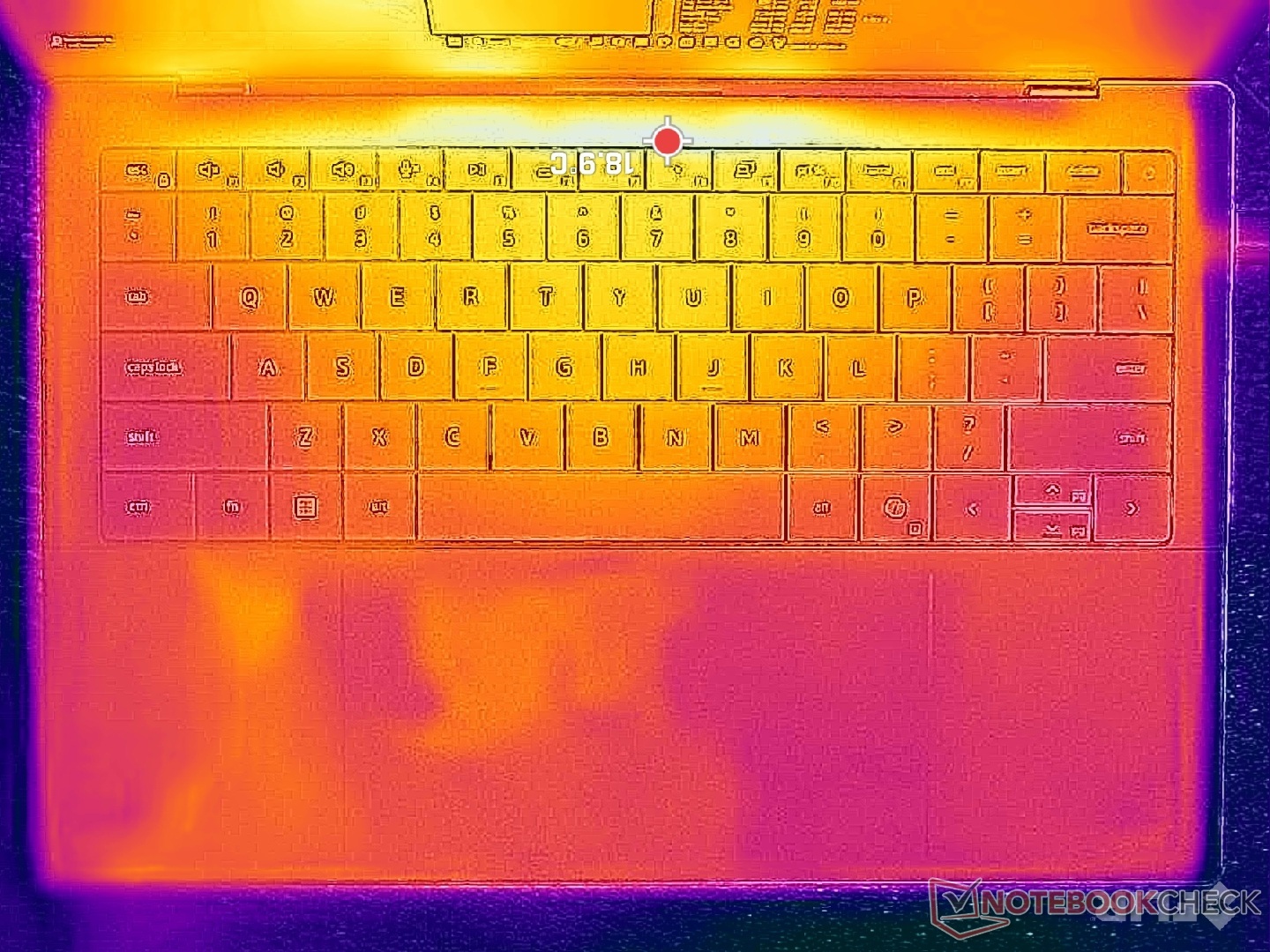 (+) A felső oldalon a maximális hőmérséklet 34 °C / 93 F, összehasonlítva a 36.9 °C / 98 F átlagával , 21.1 és 71 °C között a Multimedia osztálynál.