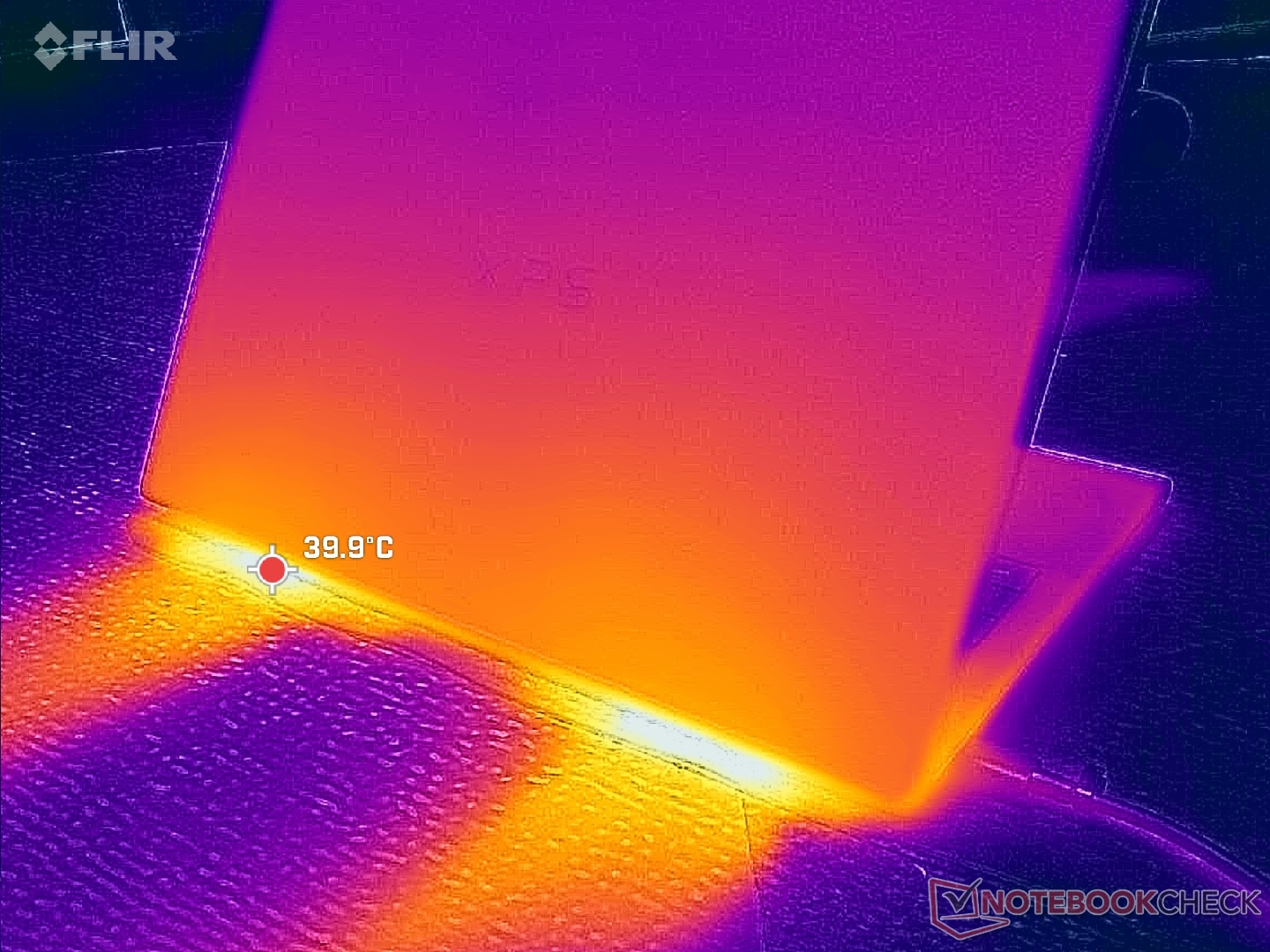 A felületi hőmérséklet kissé melegebb, mint amit a 2025-ös Dell 14 Premiumon mértünk, különösen az alján (D borítás), amikor nagyobb igénybevételt jelentő terhelést futtatunk. A forró pont elérné a 36 C és 39 C közötti hőmérsékletet, szemben a tavalyi kivitel 34 C-os értékével. A különbségek egyébként minimálisak és nem elég melegek ahhoz, hogy használat közben zavaróak legyenek.
