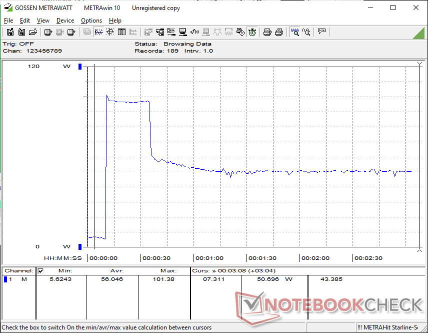 A Prime95 stressz futtatásakor a CPU 3 GHz-re, 69 W-ra és 100 C-ra gyorsult, majd nagyjából 30 másodperccel később 2 GHz-re, 30 W-ra és 74 C-ra esett vissza. A Turbo Boost fenntarthatósága tehát korlátozott, ami korrelál a fenti CineBench R15 megfigyeléseinkkel. Összehasonlításképpen, ugyanez a CPU a ExpertBook Ultra a gyorsabb processzorteljesítmény érdekében 48 W-nál magasabb értéken stabilizálódna.