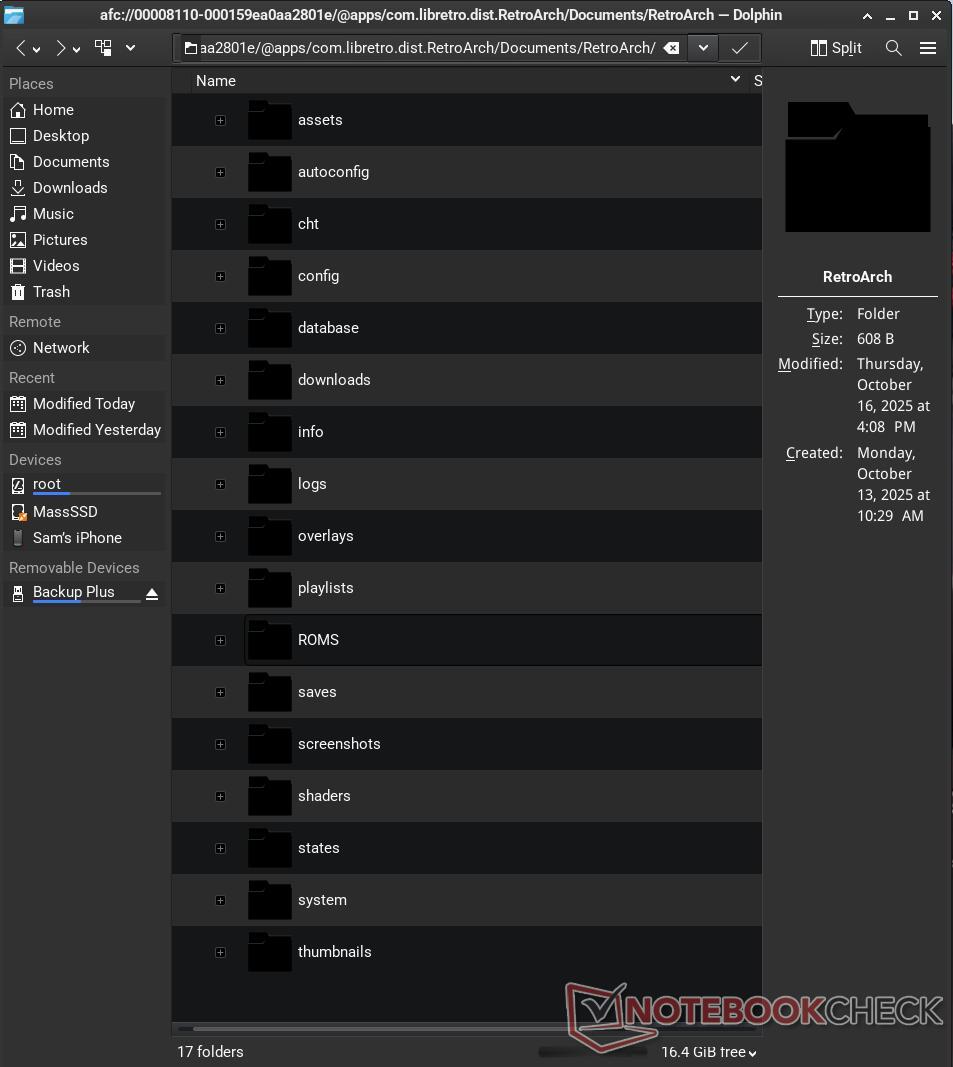 Amikor megpróbáltam telepíteni a KDE-t (lásd fentebb), a Dolphin fájlkezelőt hagyta a készülékemen. Elkezdtem használni a Dolphint, és jobban tetszett, mint az XFCE4 alapértelmezett fájlkezelője (Thunar). A Dolphin kellemes meglepetést tartogatott: képes volt felismerni az iPhone-omat, ha az be volt dugva. Ez megkönnyítette a fájlok átvitelét a telefonomra és a telefonomról, mivel a fájlkezelő teljes fájlhozzáférést biztosított az iPhone-nak. Annak köszönhetően, hogy a Apple's fájlkezelés milyen messzire jutott az iOS-en, minden egyes alkalmazásomhoz külön fájlok tartoztak. A teljes folyamat lényegesen egyszerűbb, mint a Windowson, mivel az iTunes-ra már nincs szükség.