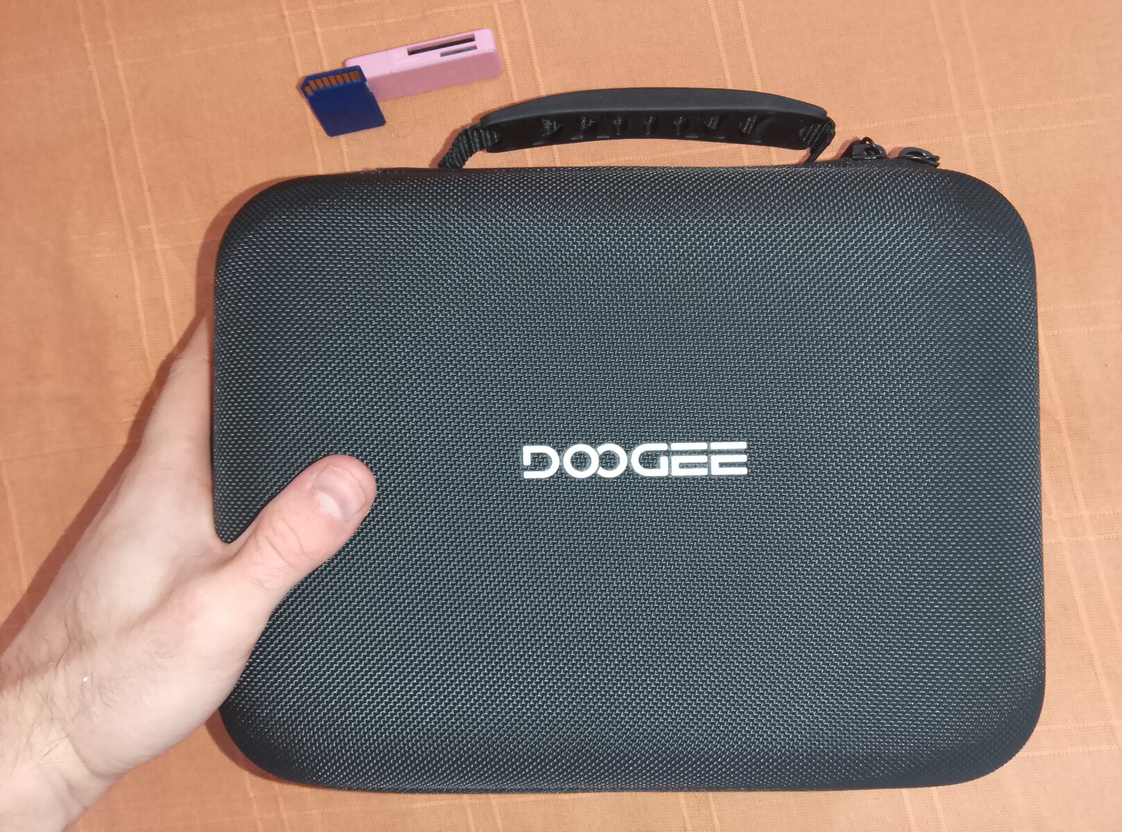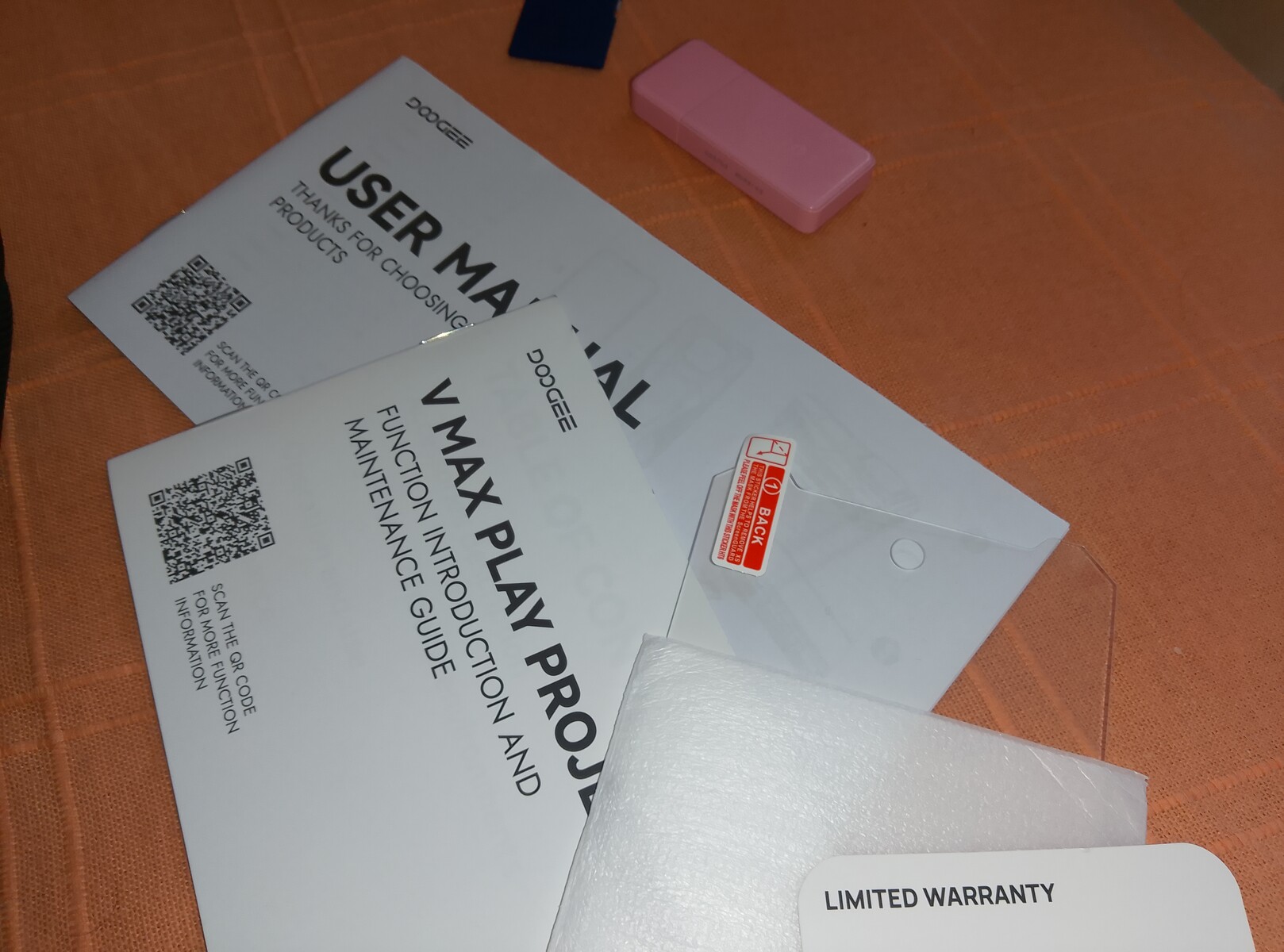 A hagyományos kartondoboz mellett egy fekete műanyag utazótáska is biztosítja a telefon biztonságát a felhasználóhoz vezető úton. A tokban a V Max Play mellett egy kis 45 wattos töltő, egy USB-C-ről USB-C-re csatlakozó kábel, egy kemény kijelzővédő, különböző információs és garanciális füzetek, valamint egy kemény védőtok slash telefontartó - egy nagy műanyagdarab, amely a Doogee telefon hátulját, alját, bal és jobb oldalát védi, az egyik oldalán pedig egy fogantyú található. Ez az alapkészlet; azok, akik készek egy kicsit többet fizetni, egy kis Doogee márkájú Bluetooth hangszórót és egy állványt is kapnak, hogy remélhetőleg kicsit könnyebbé tegyék a V Max Play kivetítőként való használatát.