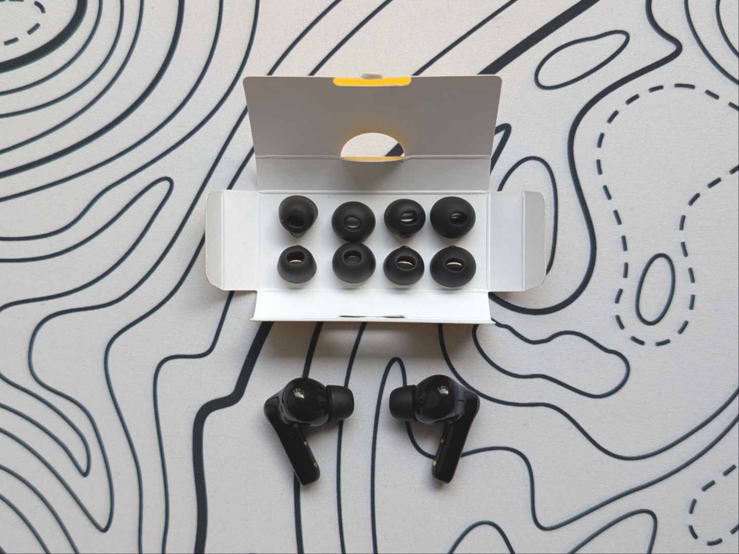 Egyszerű és egyszerű kicsomagolási élmény, az EarFun Air Pro 4+ a kompakt töltőtáskával, különböző méretű füldugókkal és egy kis USB Type-C töltőkábellel érkezik. Bónusz, hogy az EarFun a kis, közepes és nagy füldugók mellett extra-kis és extra-nagy füldugó párokat is csomagol.
