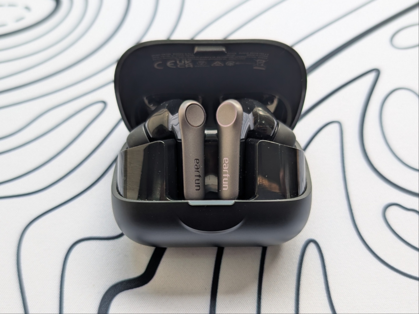 A vezeték nélküli fülhallgatók 2025 Red Dot Design Award győztesek, és az EarFun büszke erre az elismerésre, a doboz elején található jelvénnyel. Ami a fülhallgatókat illeti, eléggé szabványosnak tűnnek, és olyanok, mint néhány más fülbe helyezett fülhallgató stílusú fülhallgató szárral, például a Soundcore és a Baseus termékei. A tok elég kicsi, ami nagyon megkönnyíti a zsebben való hordozást, de mivel az elülső rész nagy része a fedél része, kicsit nehéz egy kézzel kinyitni. A fedél zárásakor kielégítő kattanás tapasztalható, és egy fényes LED-lámpa jelzi az akkumulátor töltöttségi szintjét és a kapcsolat állapotát.