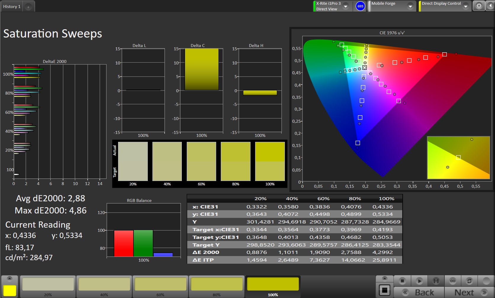 Az IPS-kijelző állítólag 600 nits tipikus fényerővel rendelkezik. A 2,5K-s képernyő ezt az ígéreteknek megfelelően tiszta fehér háttérrel kezeli, kisebb képkivágásoknál (APL18) kissé megnőve 762 cd/m²-re. Az IdeaTab Plus könnyen használható a szabadban, amennyiben kerüljük a közvetlen napfényt.