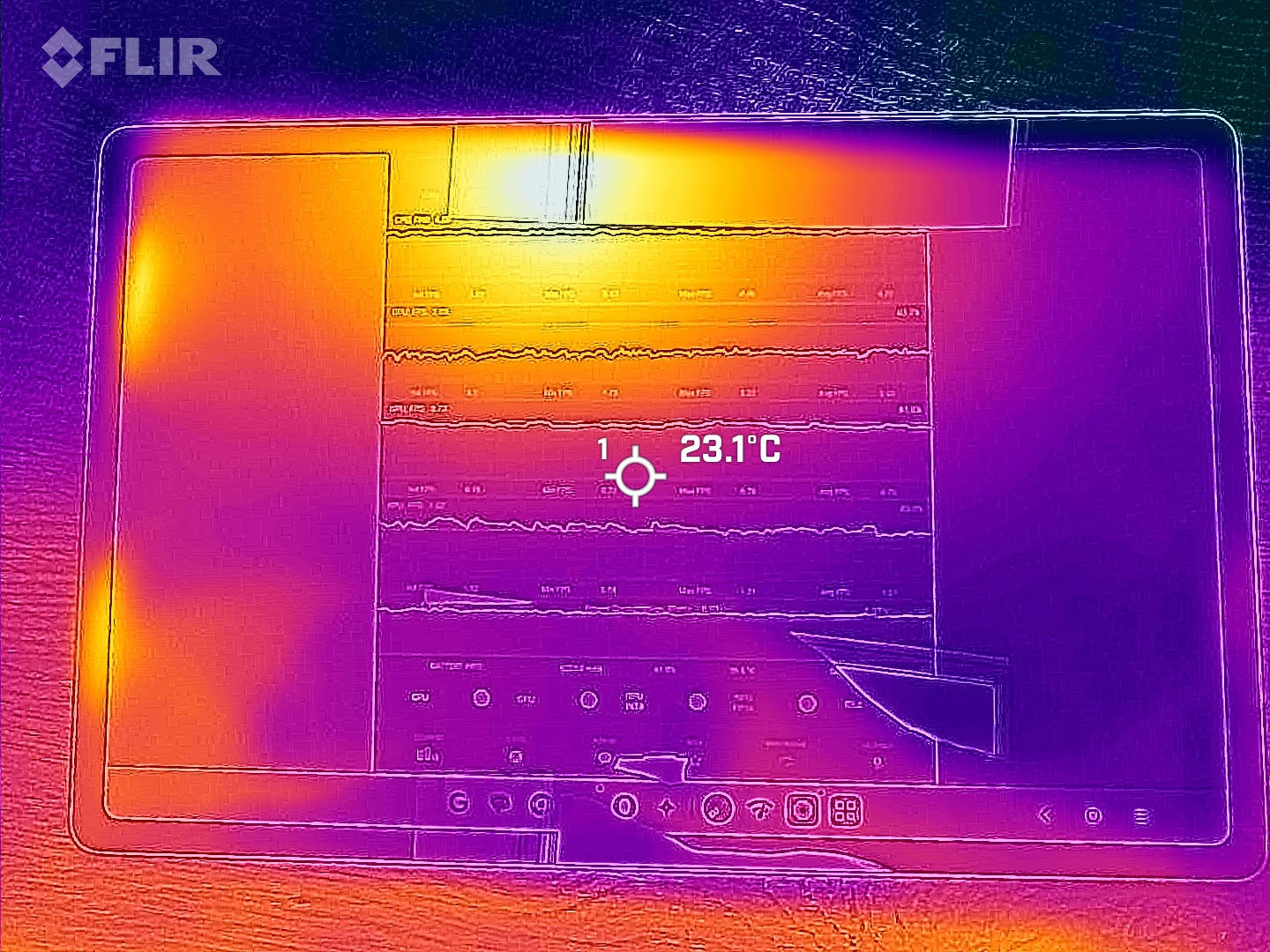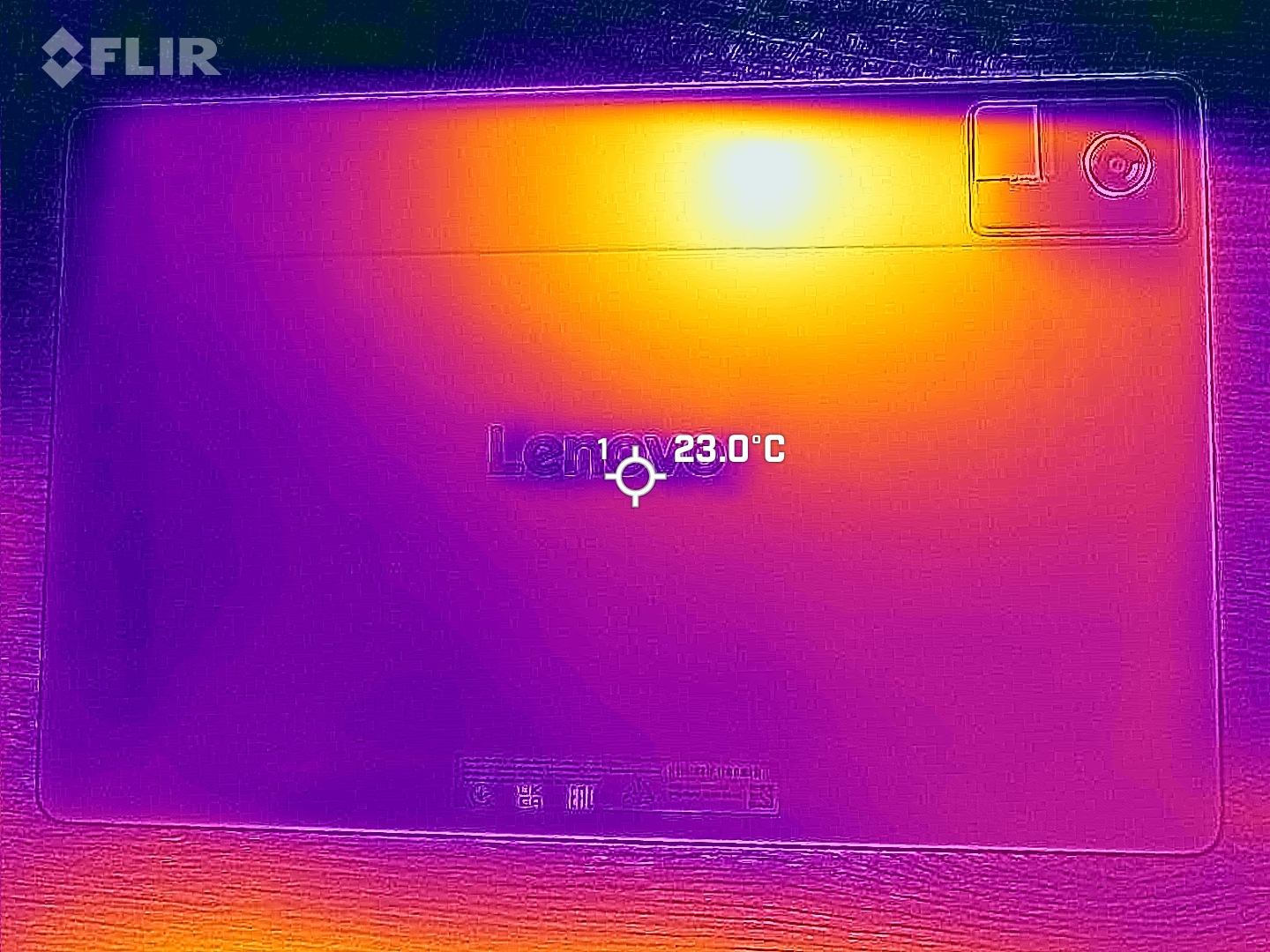 A Lenovo táblagép nagyon nyugodt maradt, függetlenül attól, hogy milyen CPU és GPU tesztterhelésnek tettük ki. Az IdeaTab Plus még a Burnout benchmarkkal végzett egyórás stresszteszt után sem melegedett fel. Teljes terhelés alatt szinte semmilyen teljesítménycsökkenés nem következett be, amint azt a 3DMark stressztesztek is mutatják.