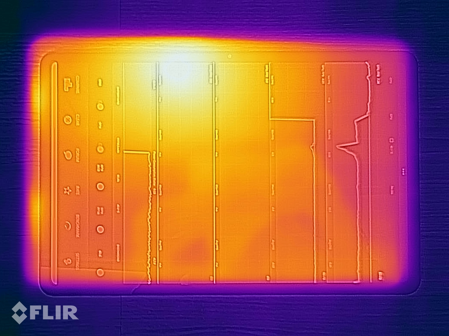 A Xiaomi tablet működése közben hűvös marad. Tesztjeink során nem tudtuk elérni, hogy a felületi hőmérséklete meghaladja a 38,8 °C-ot. Ez megfelel a GFXBench T-Rex stressztesztjének, amelyben a tablet még hosszan tartó maximális terhelés után sem mutatott teljesítménycsökkenést.