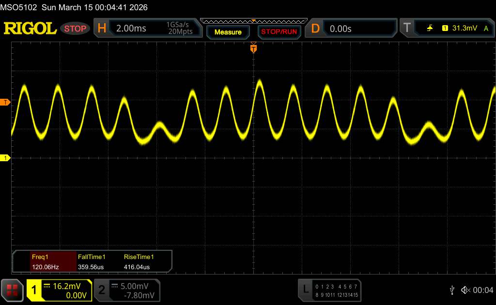 Az iQOO 15 Ultra nagy fényerőnél DC dimmelést, alacsony fényerőnél pedig 2160 Hz-es PWM dimmelést alkalmaz az OLED villódzás negatív hatásainak csökkentése érdekében. Mi azonban mindössze 120 Hz-es alapfrekvenciát mértünk, ami azt jelenti, hogy az impulzusszélesség-moduláció okozta egészségügyi problémák nem zárhatók ki.