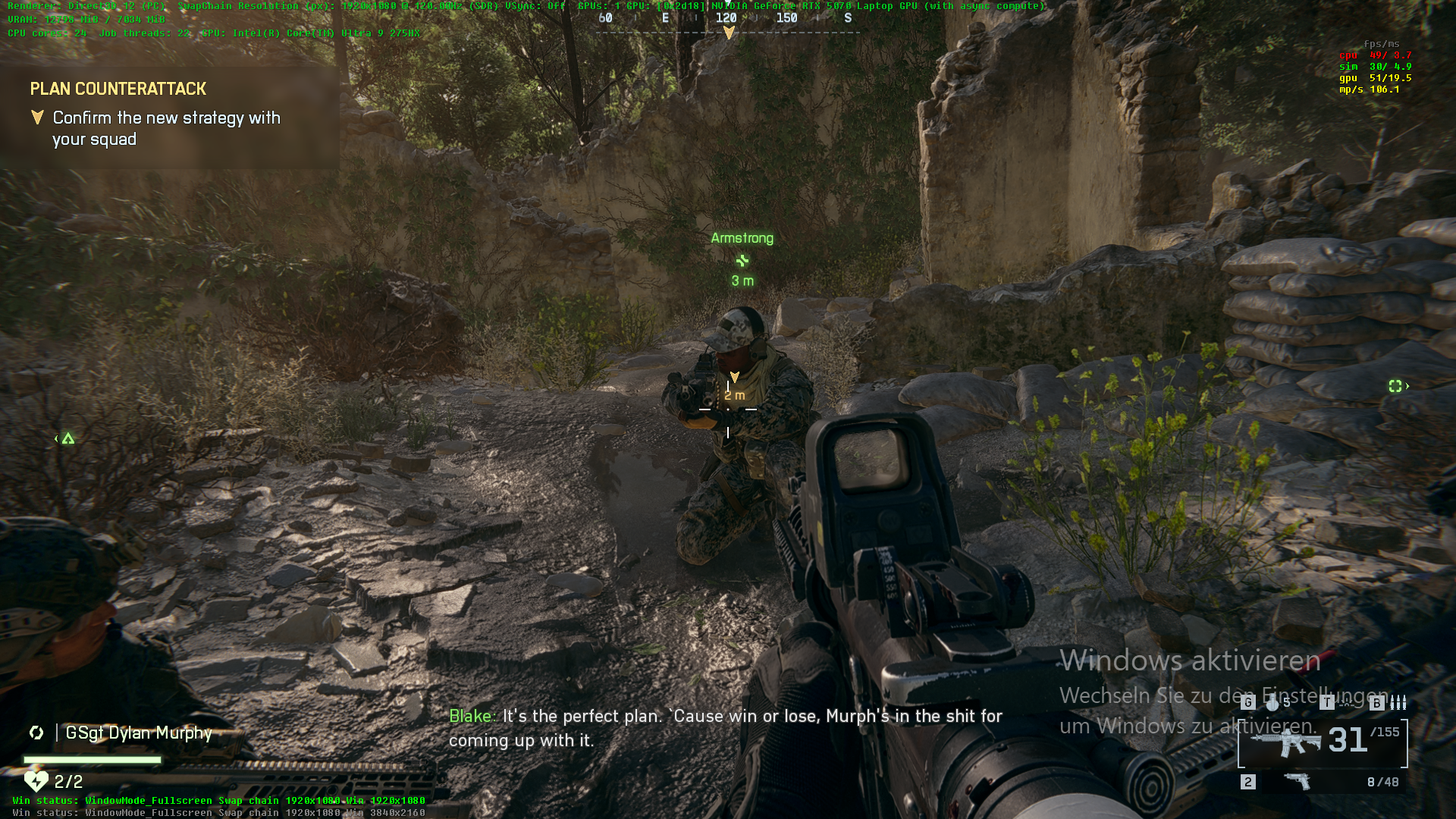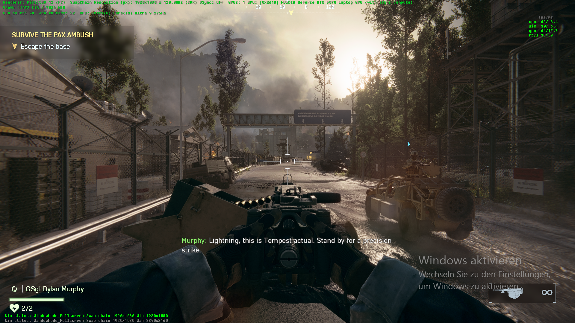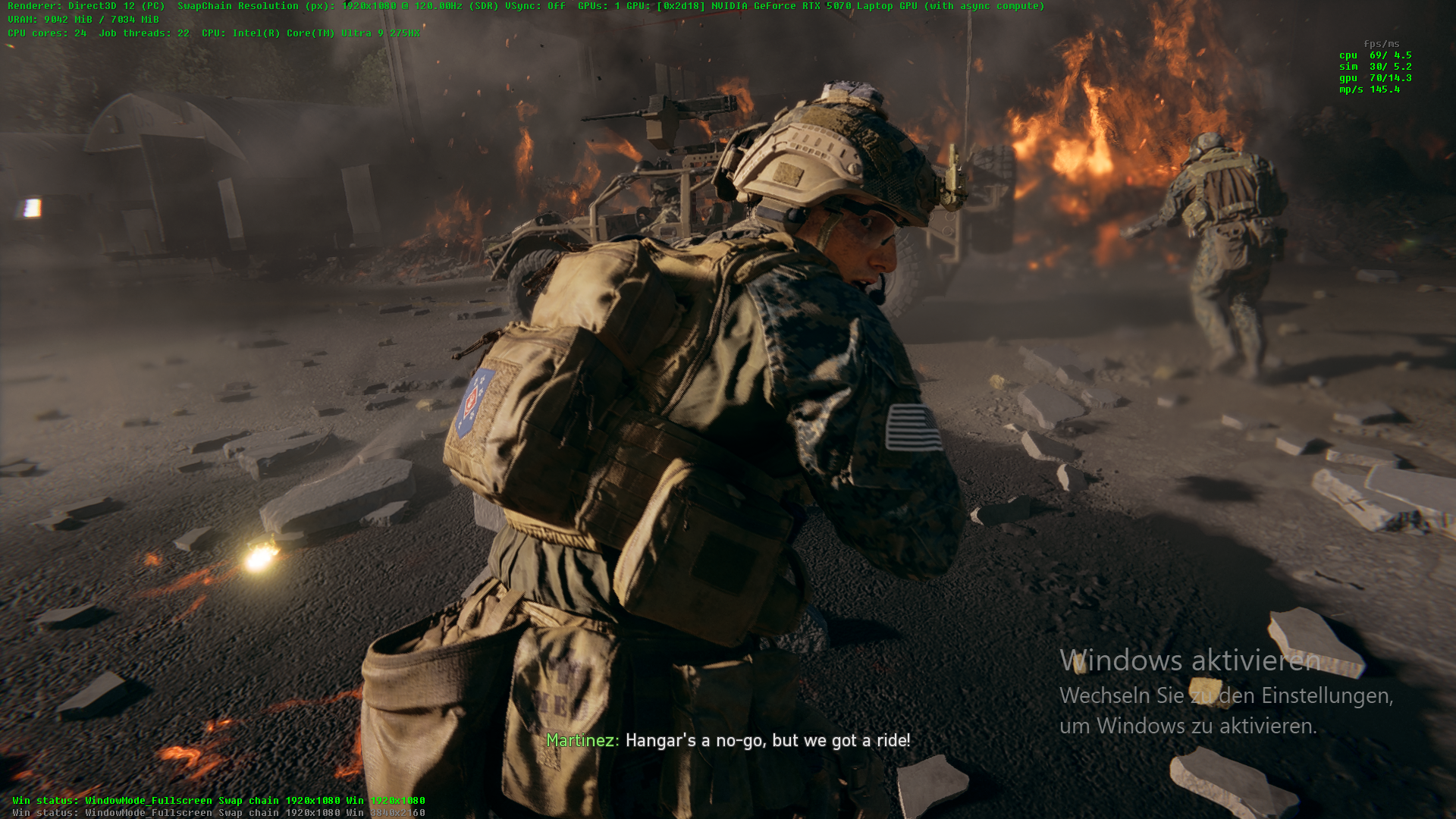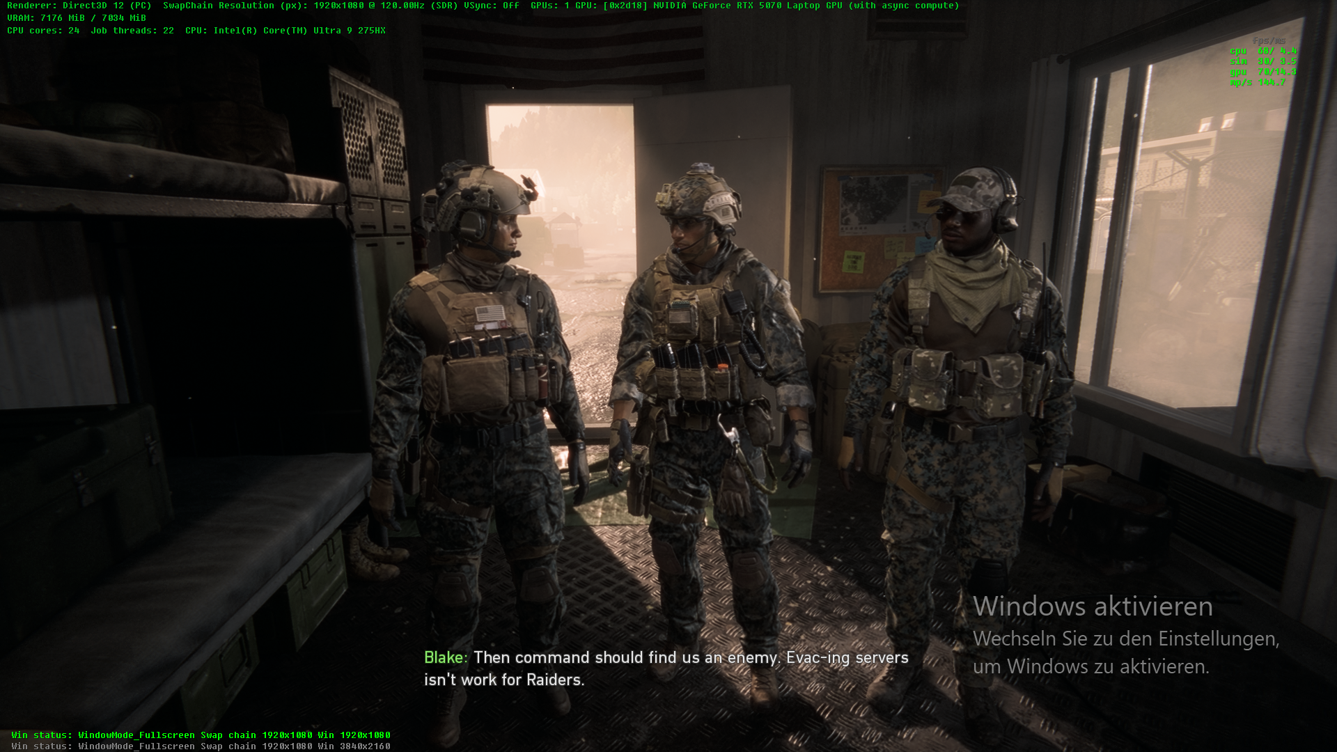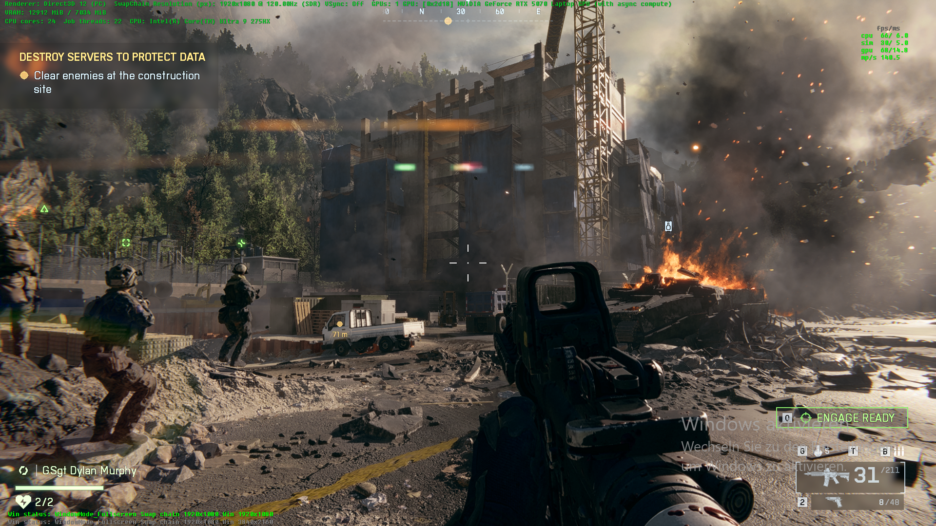 A többjátékos meccsek esetében nem mindegy, hogy kis léptékű vagy nagy léptékű csatákat játszol. Egy kis léptékű csata nem jelent gondot QHD-ban, és a teljesítmény stabil volt az RTX 5070-en. Ez megváltozik, amint csatlakozol egy nagyszabású csatához, ahol a viselkedés megegyezik a kampányéval, és a teljesítmény néhány percen belül érezhetően visszaesik, olyannyira, hogy már nem lehet zökkenőmentesen játszani. Ha respawnolunk, akkor jobb a helyzet, de a teljesítmény gyorsan újra visszaesik.