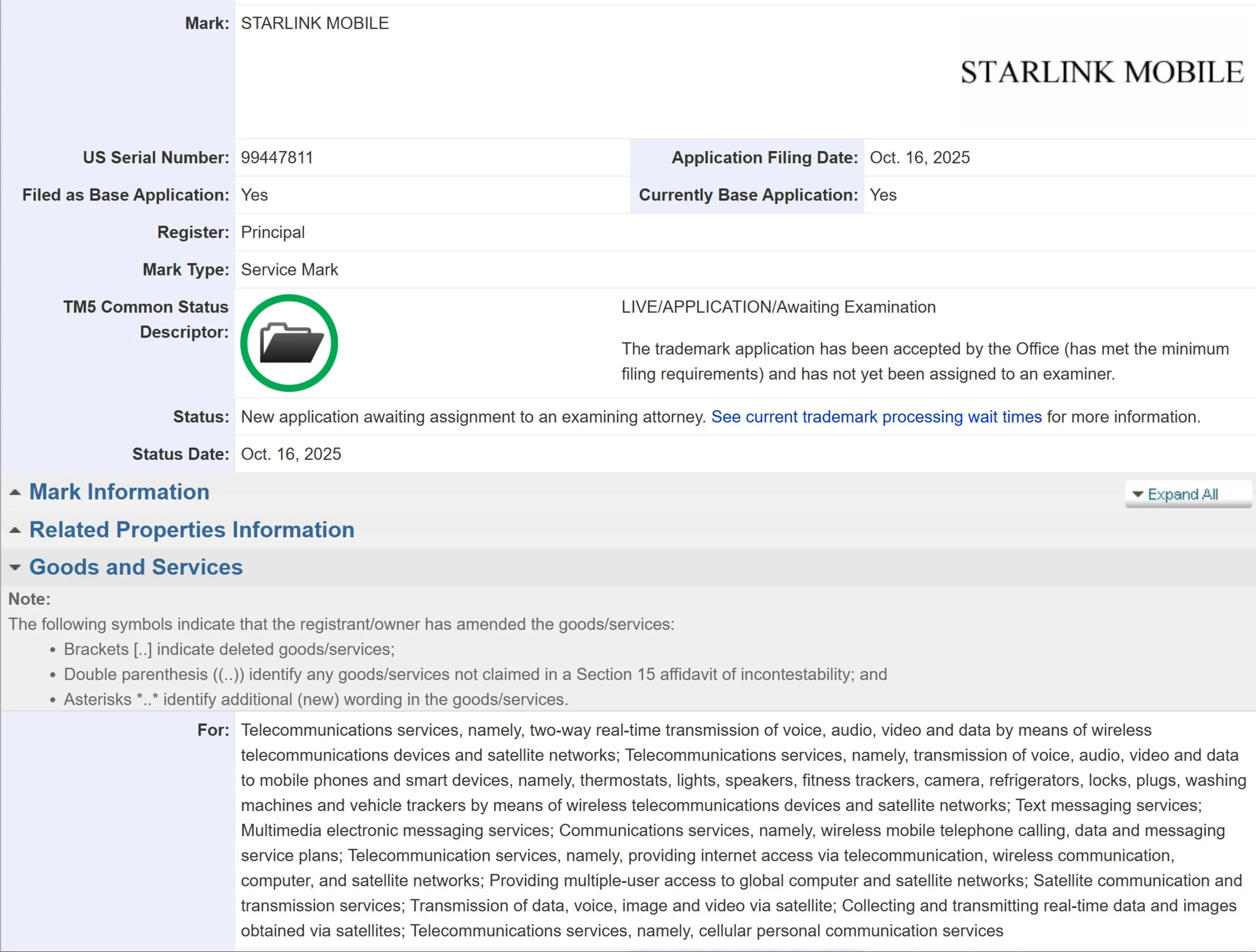 Ennek az elképzelésnek a megvalósítása érdekében a SpaceX most beadta a vállalkozás nevét, a Starlink Mobile védjegyet az USPTO-nál, és az új márka szolgáltatásainak köre gyanúsan úgy hangzik, mint egy új mobiltelefon-szolgáltató születése, csak éppen hangot és adatot nem földi mobiltornyokból, hanem az űrből sugároznak: