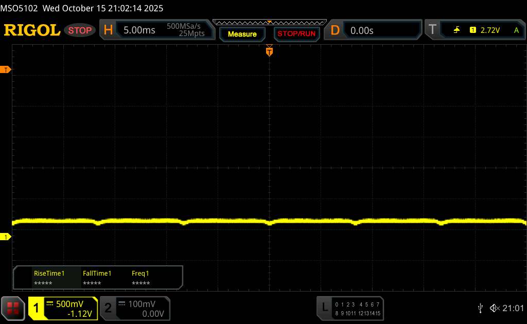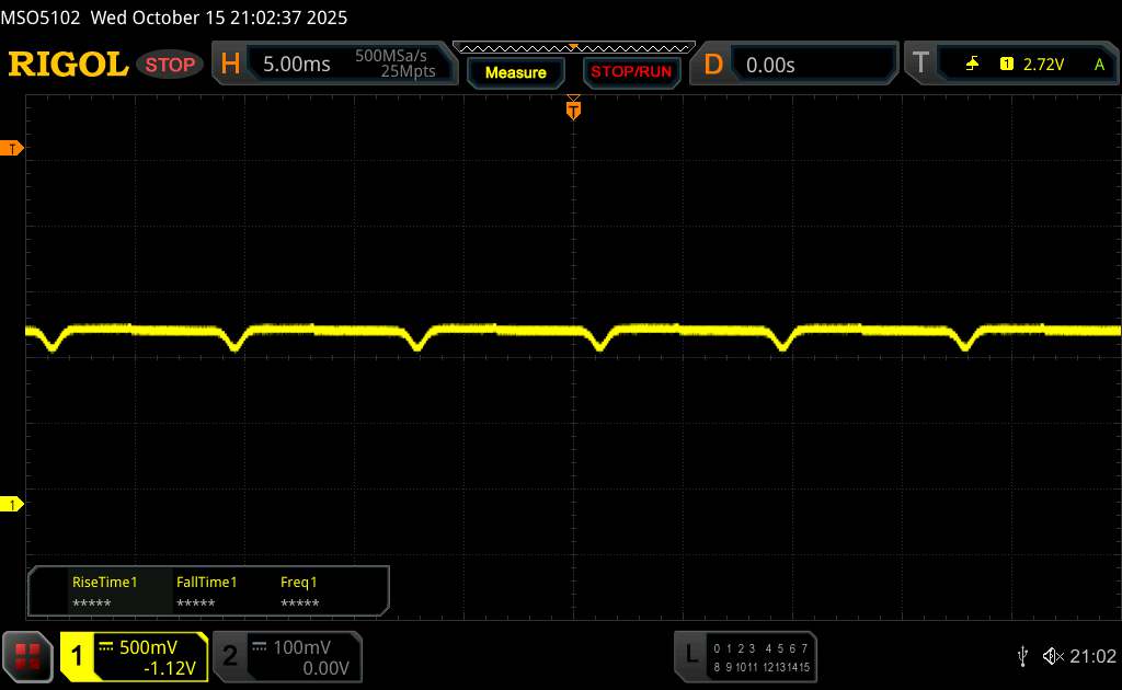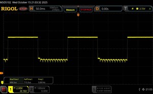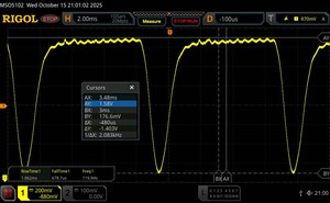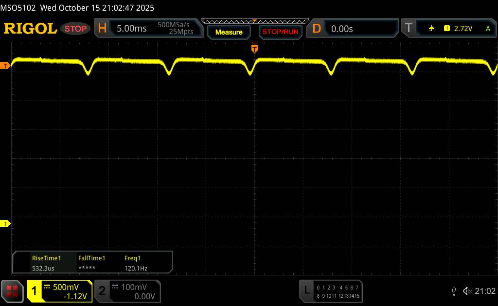 Az oszcilloszkóp alatt látható a tipikus OLED villogás, amely viszonylag alacsony, 120 Hz-es alapfrekvenciát mutat. A nagyfrekvenciás PWM-dimmelés és a sekély amplitúdógörbe azonban segít csökkenteni a vizuális megterhelést.